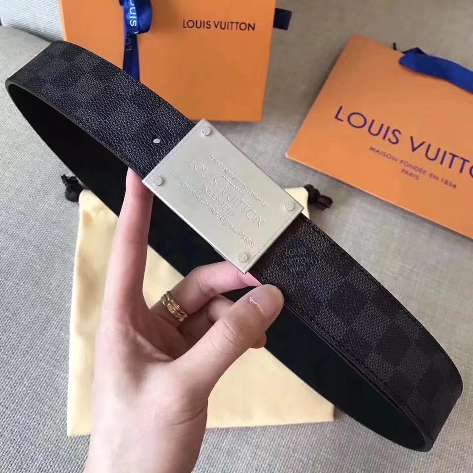 Cheap Replica Louis Vuitton Linitiales Damier Graphite Men Leather Belt Width 4cm M9808S 060