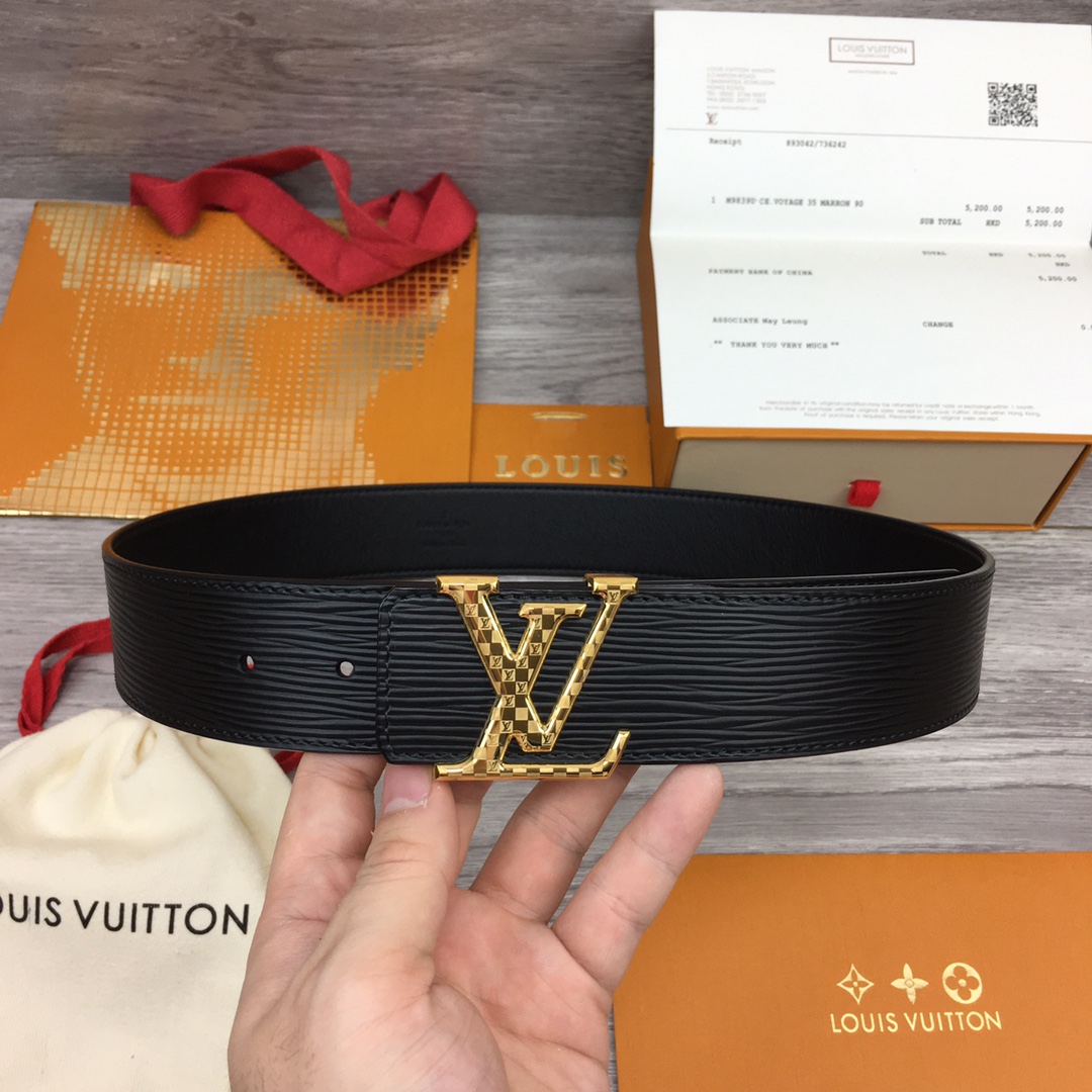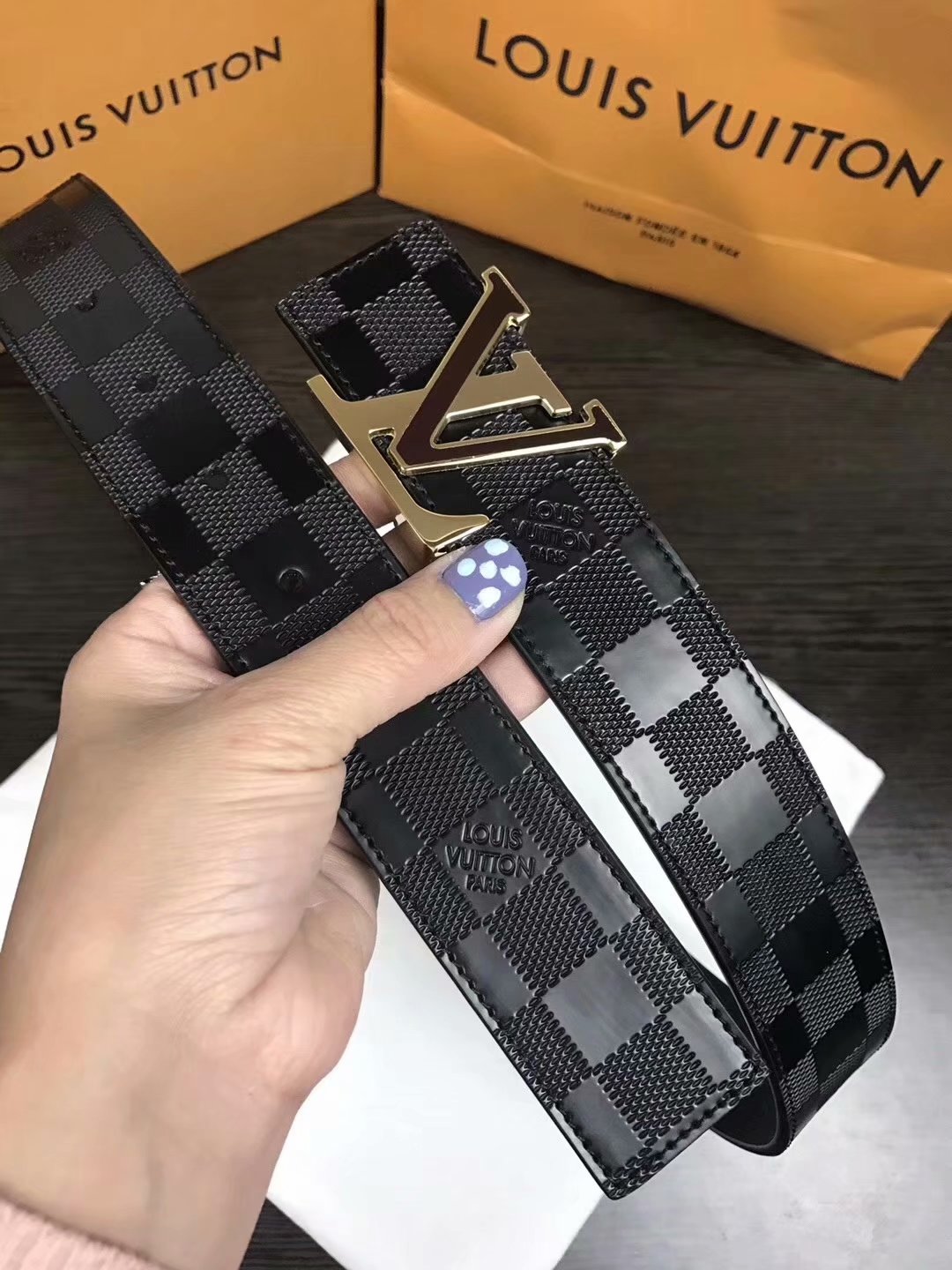 Cheap Replica Louis Vuitton Width 3.8cm Men Leather Belt With Black Gold Buckle 045