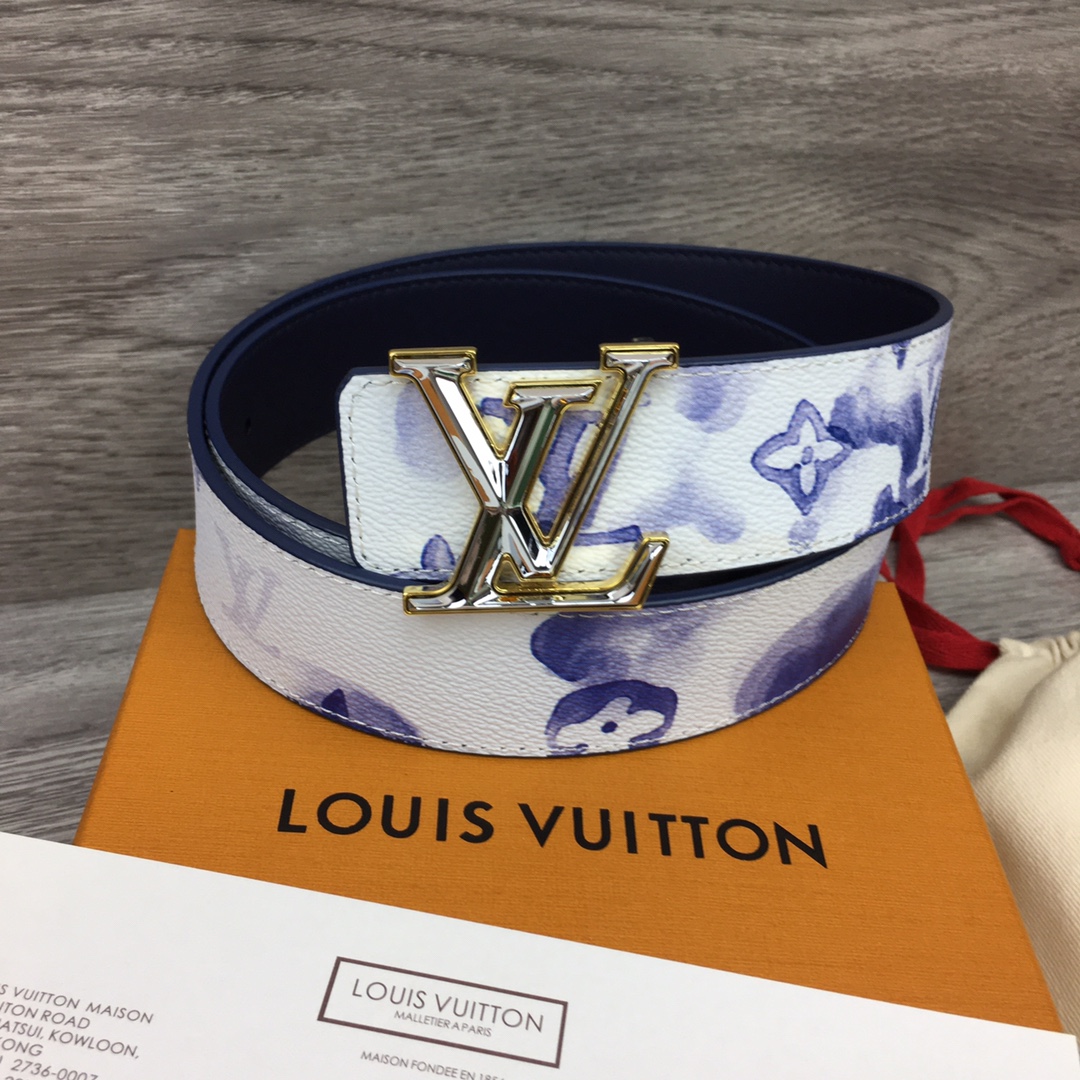 Original Copy Louis Vuitton Width 3.5cm Men Leather Belt Blue With Gold Buckle 043