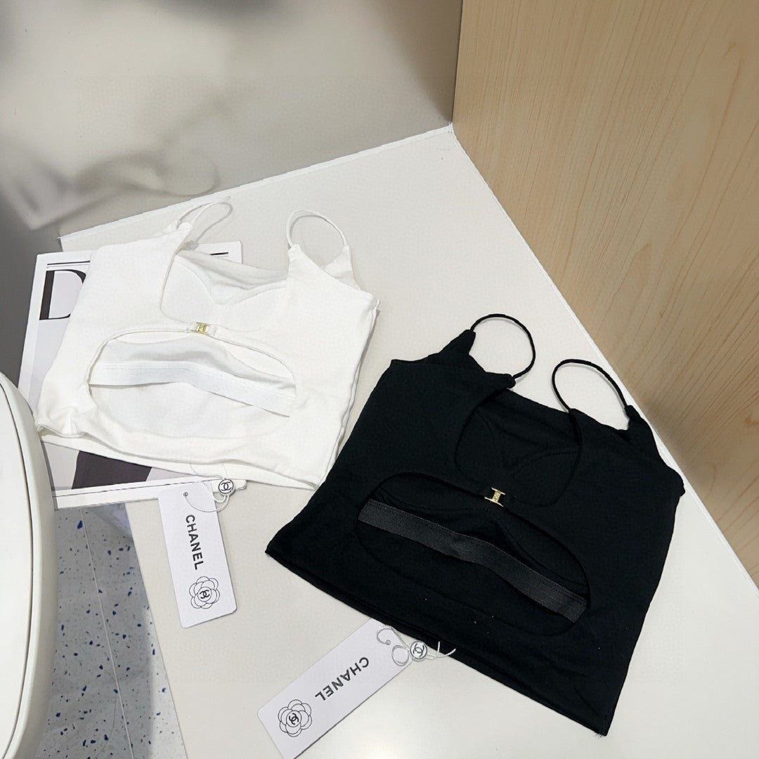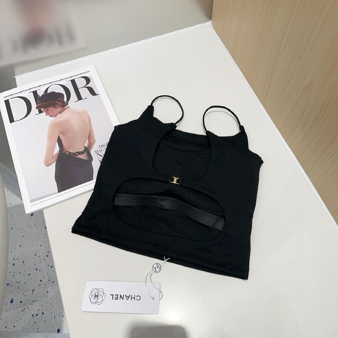 CAMI TOP 640620 IN BLACK COTTON RIBBED KNIT
