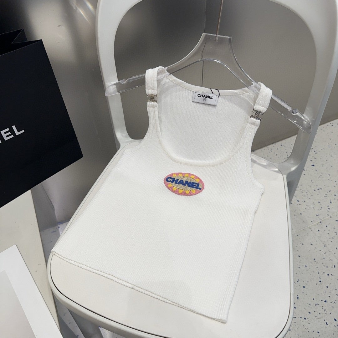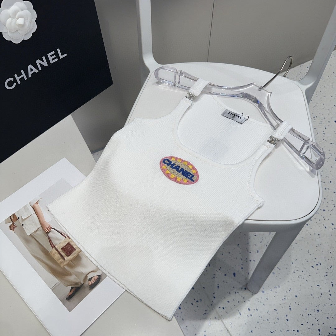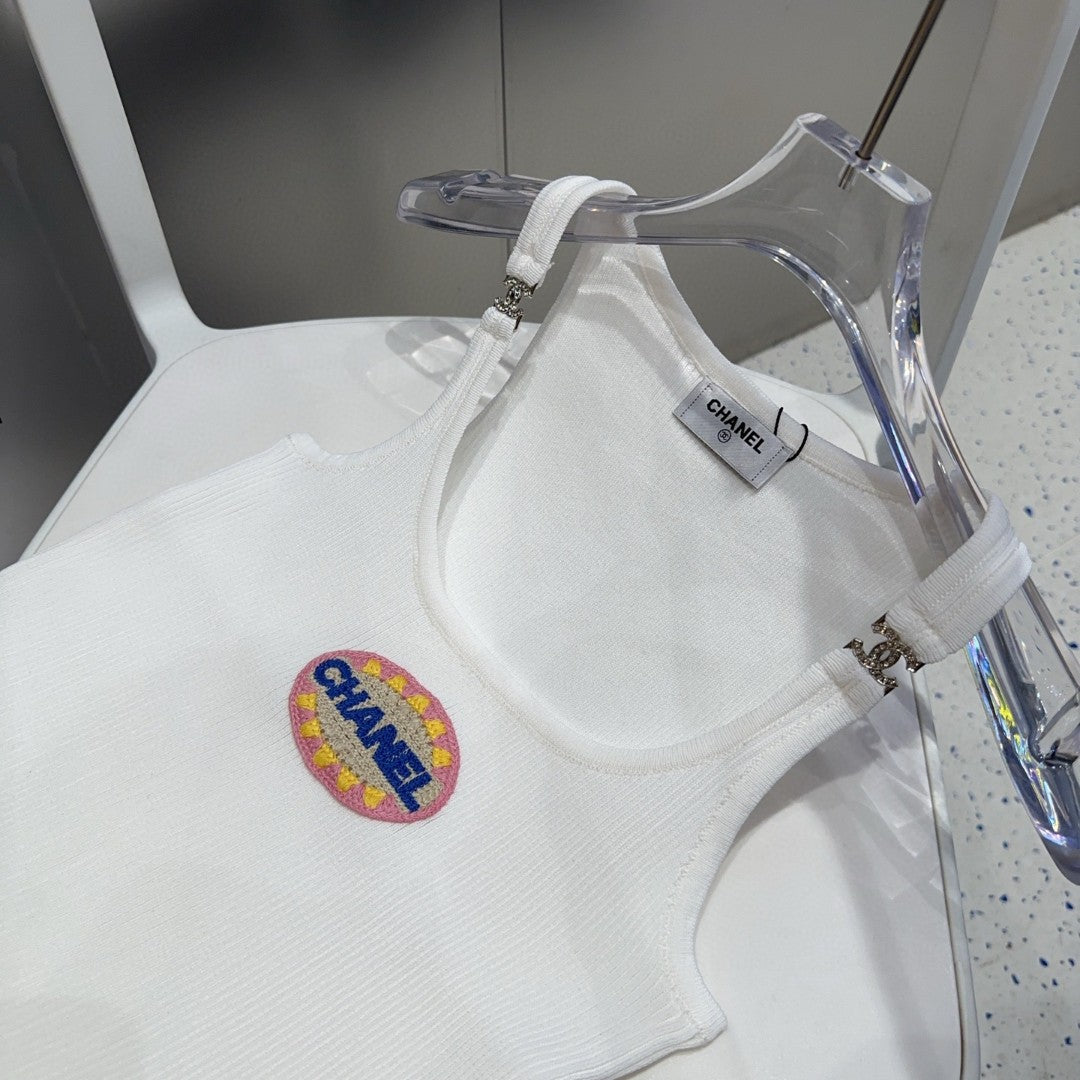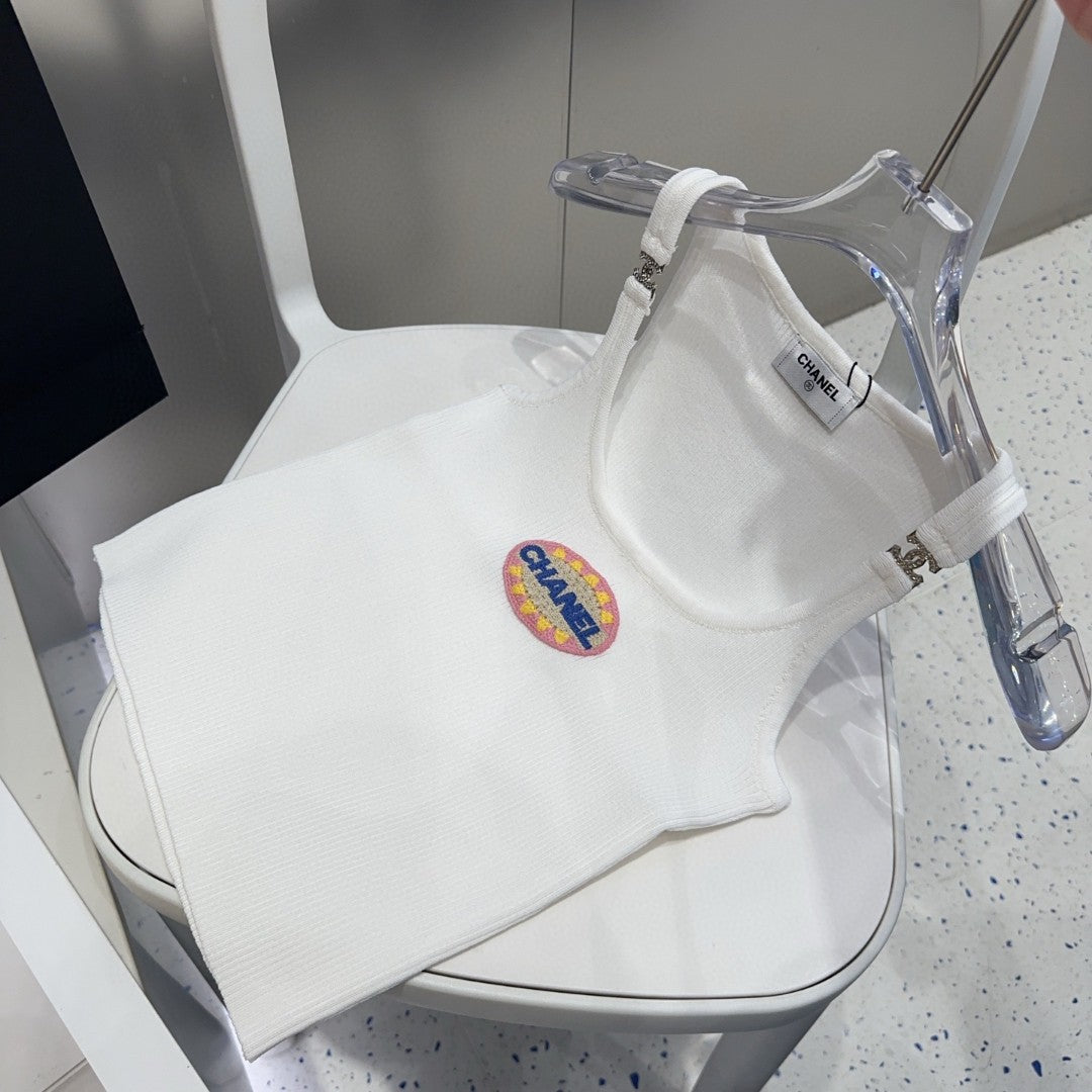 CAMISOLE 639171 IN WHITE COTTON RIBBED KNIT EMBOSSED LOGO ON STRAPS
