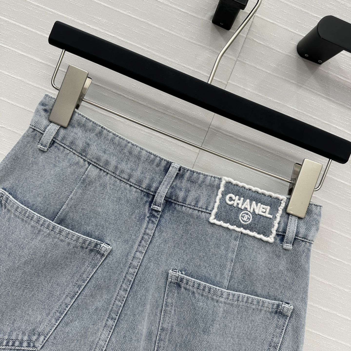 CC 25 Single-breasted Short Skirt Light Blue Denim Cotton