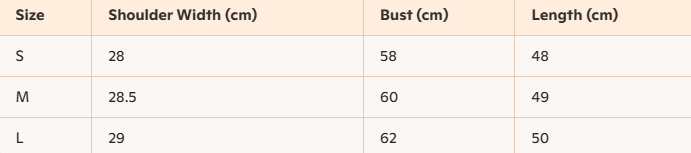 - Size : S. M. L