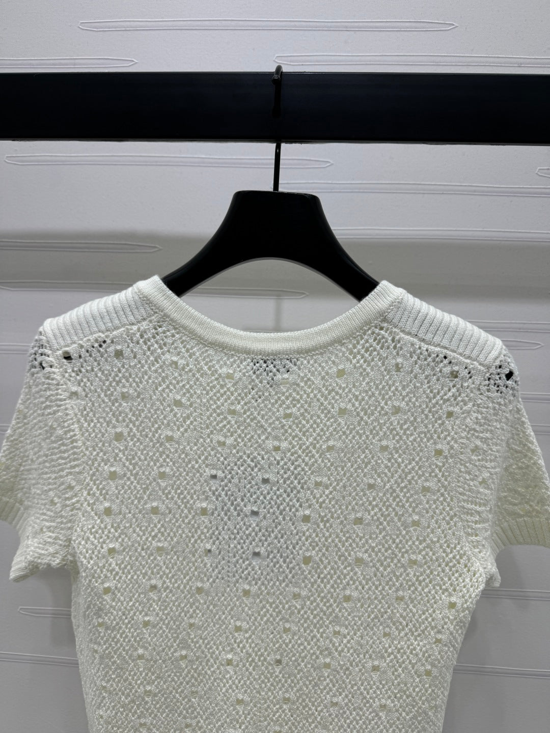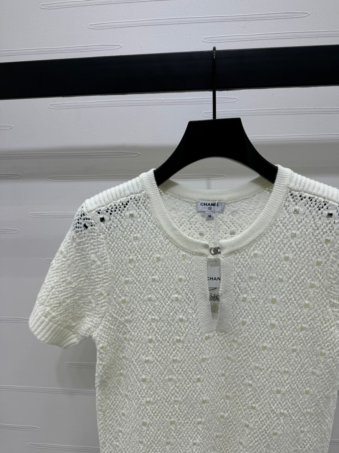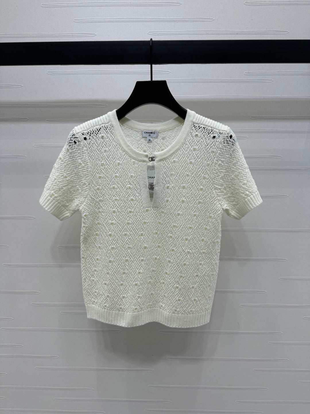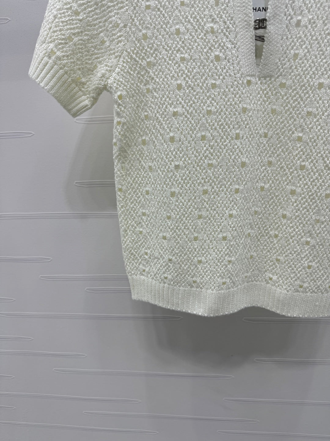 CHANEL SHORT-SLEEVE OPEN-KNIT TOP 274861
