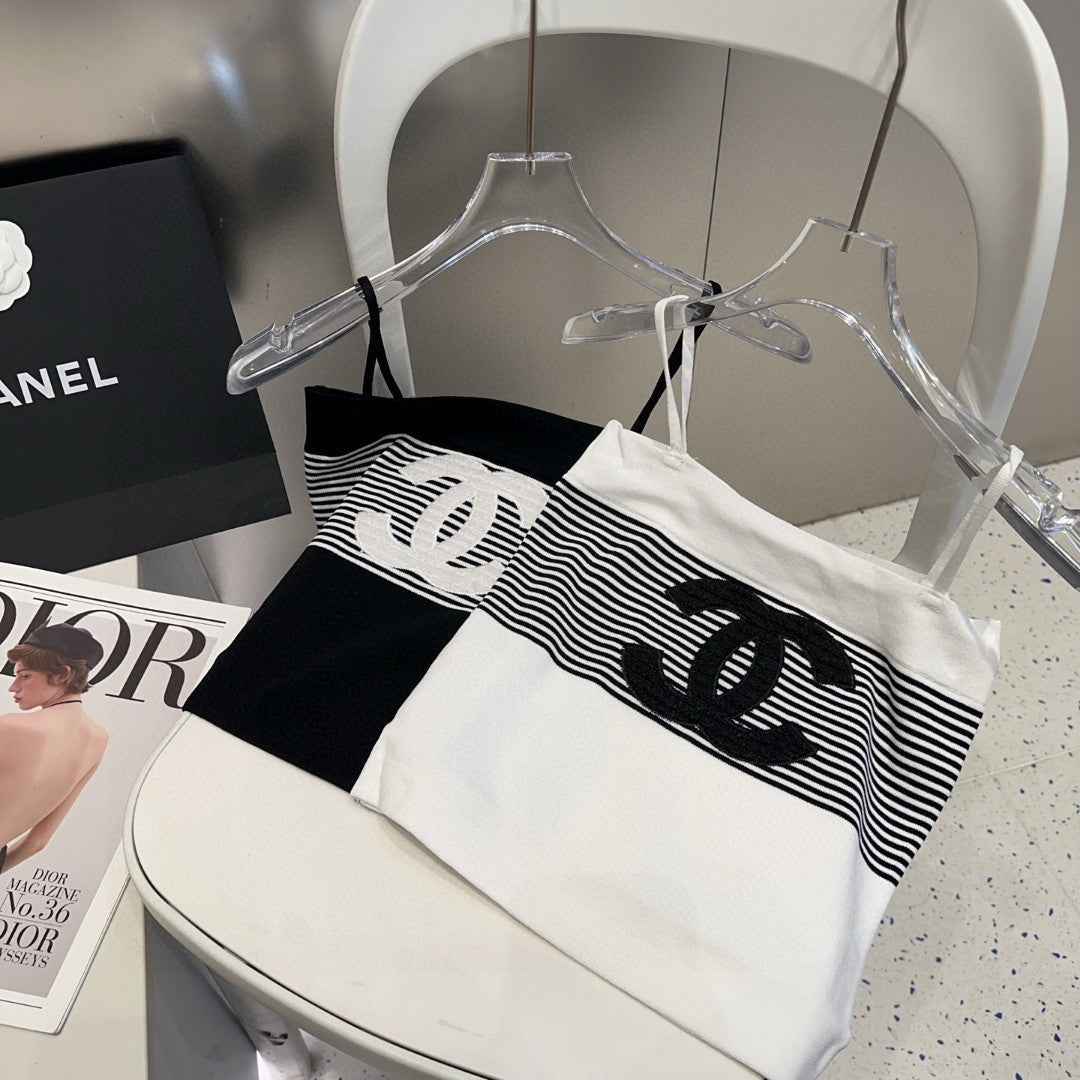 STRIPED CAMISOLE 610344 IN BLACK AND WHITE COTTON RIBBED