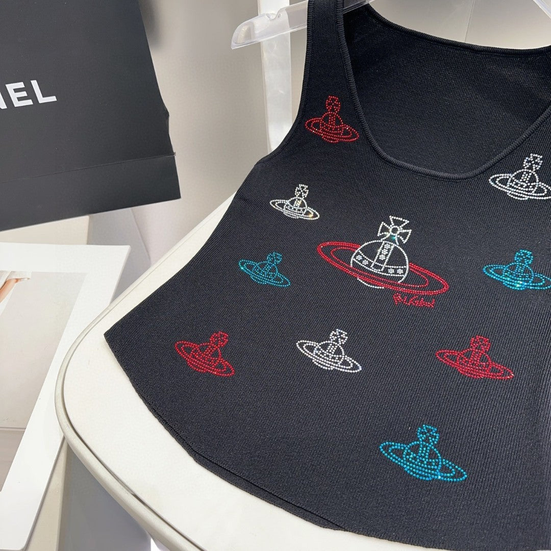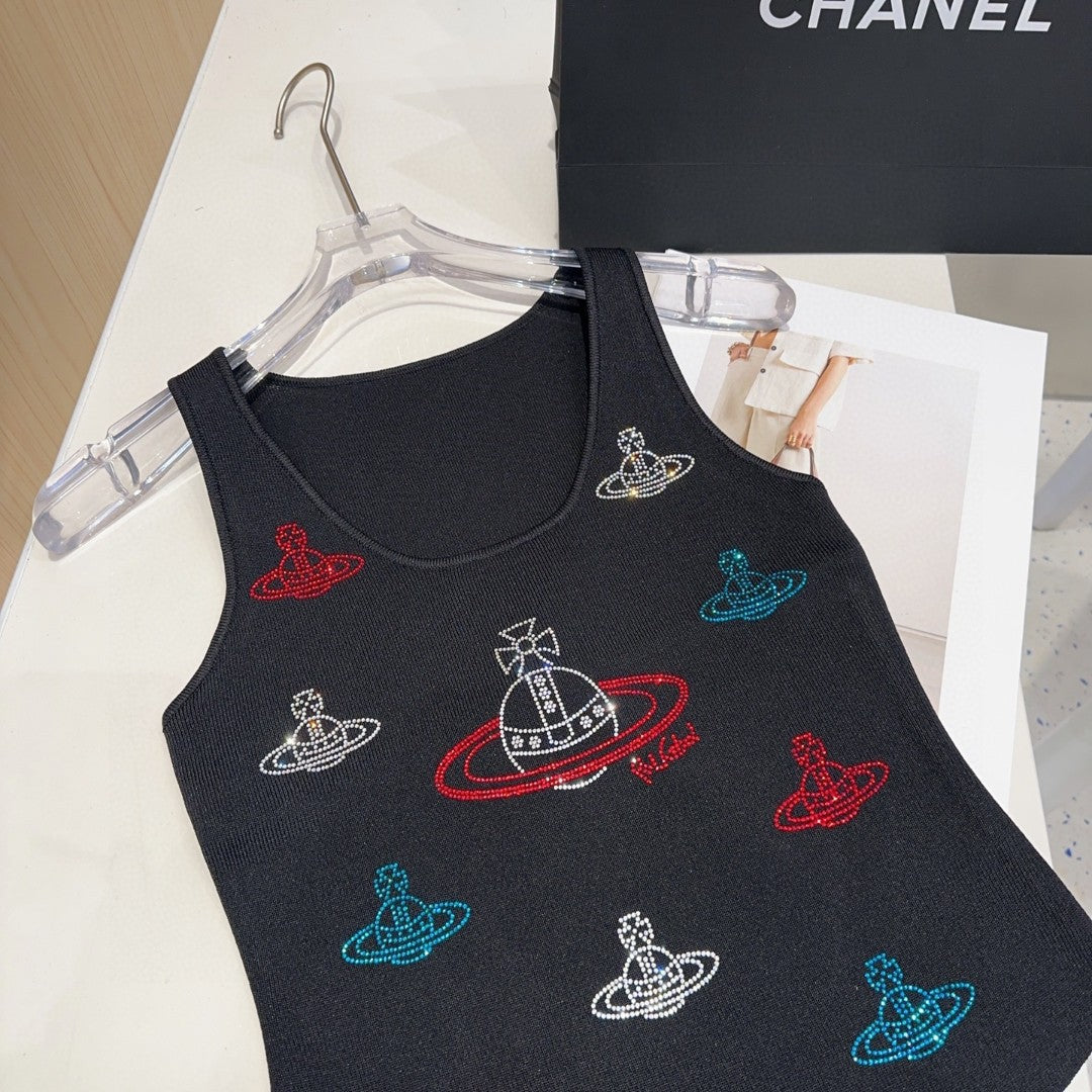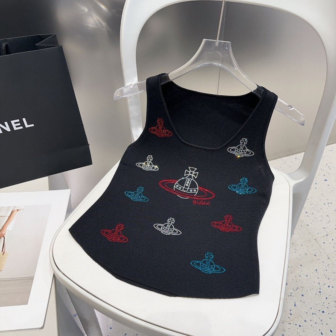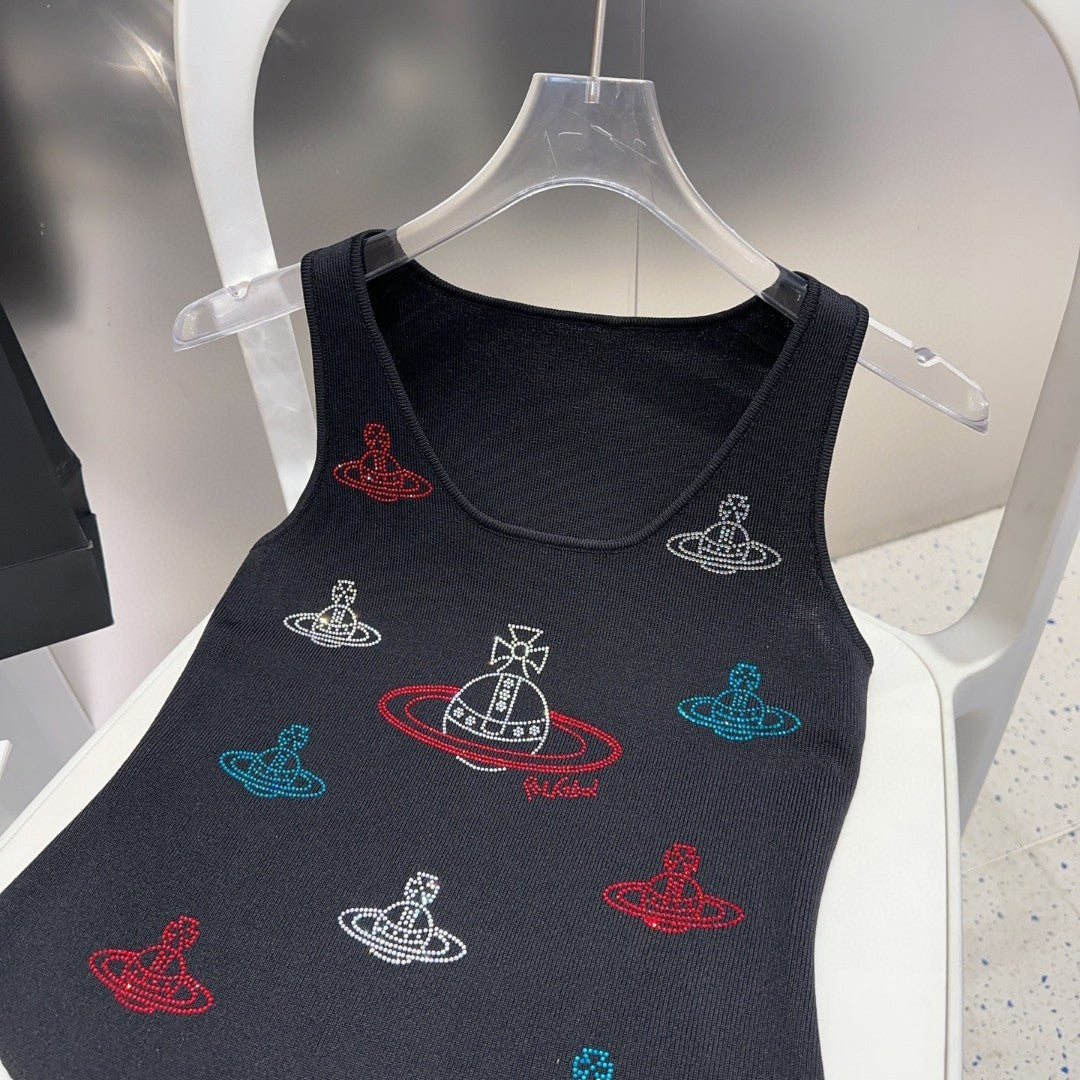 TANK TOP 639168 IN BLACK COTTON RIBBED KNIT EMBOSSED CRYSTAL