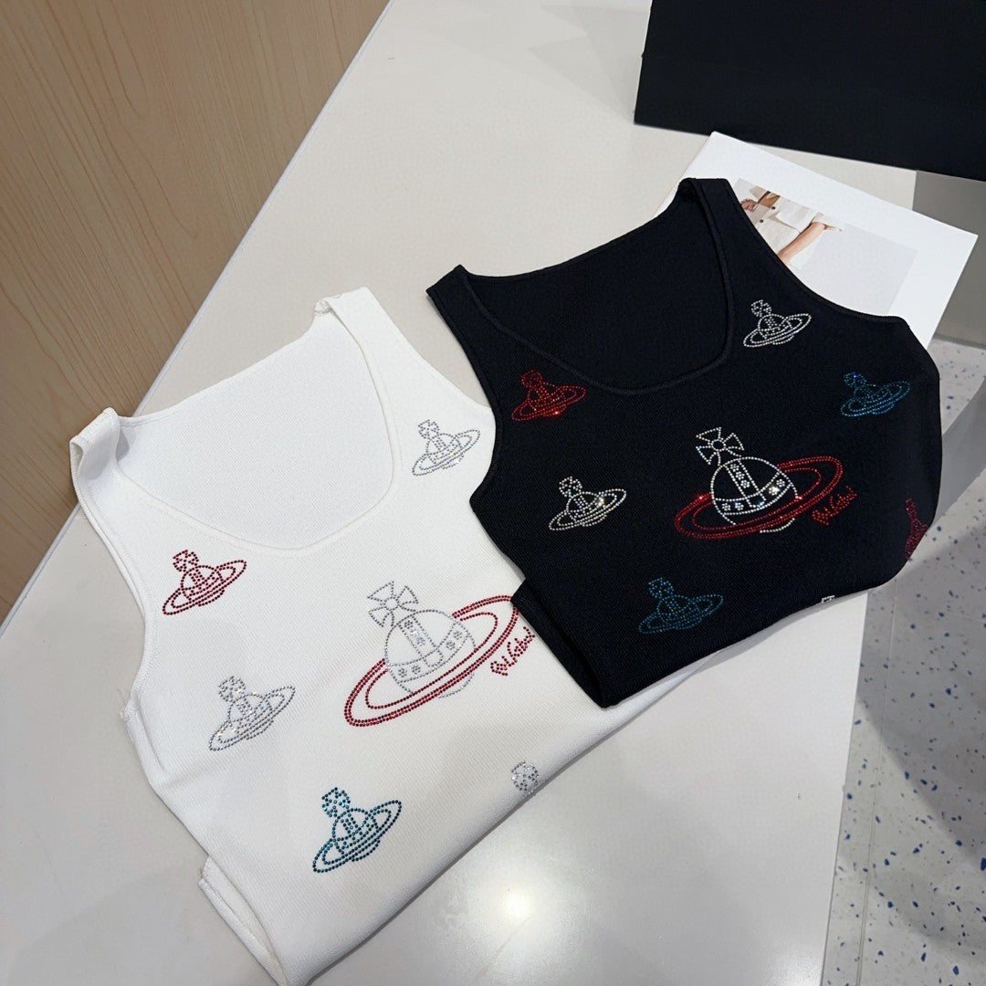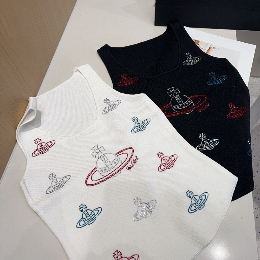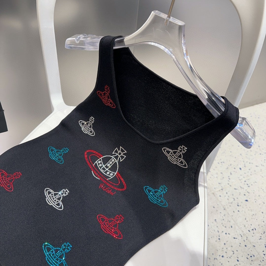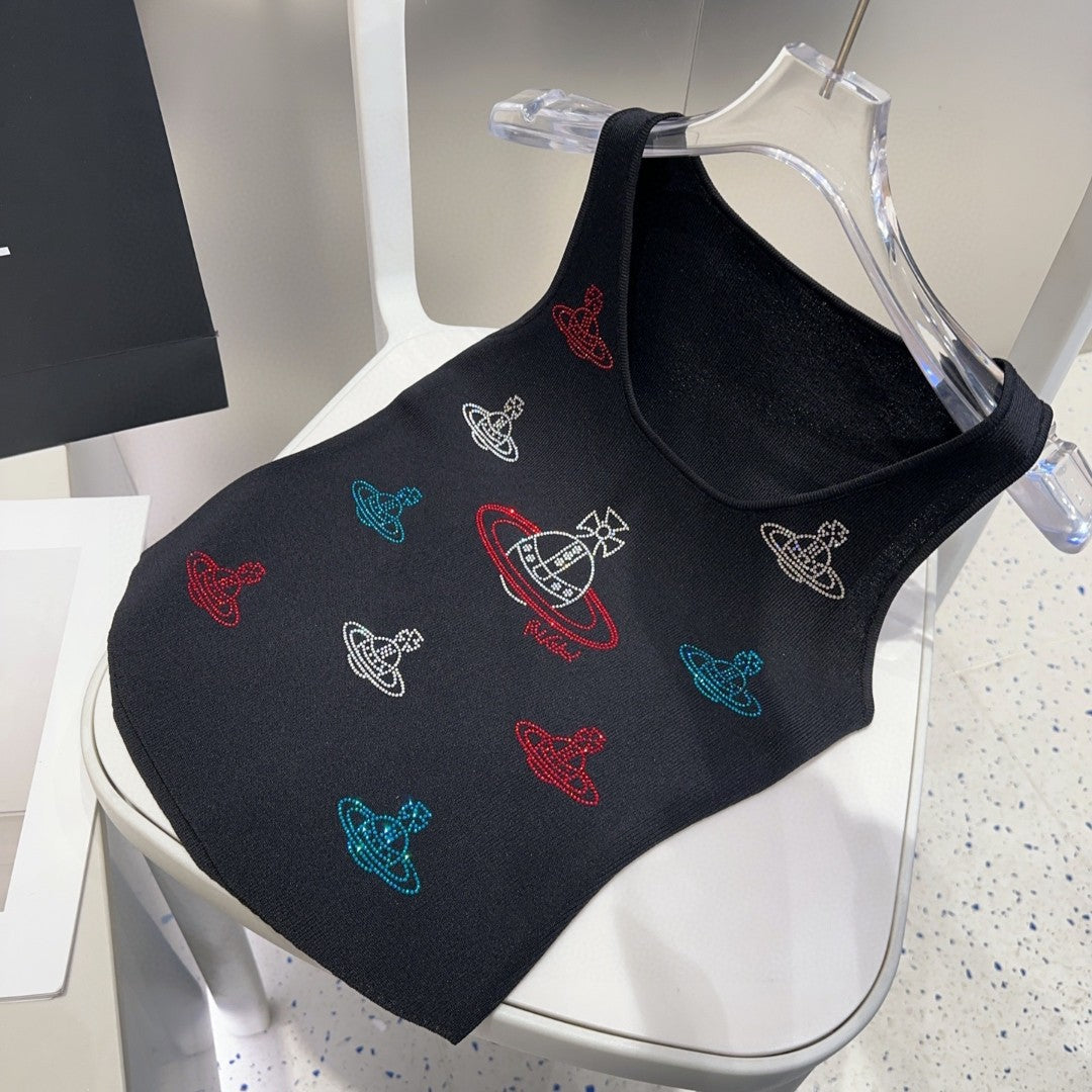 TANK TOP 639168 IN BLACK COTTON RIBBED KNIT EMBOSSED CRYSTAL