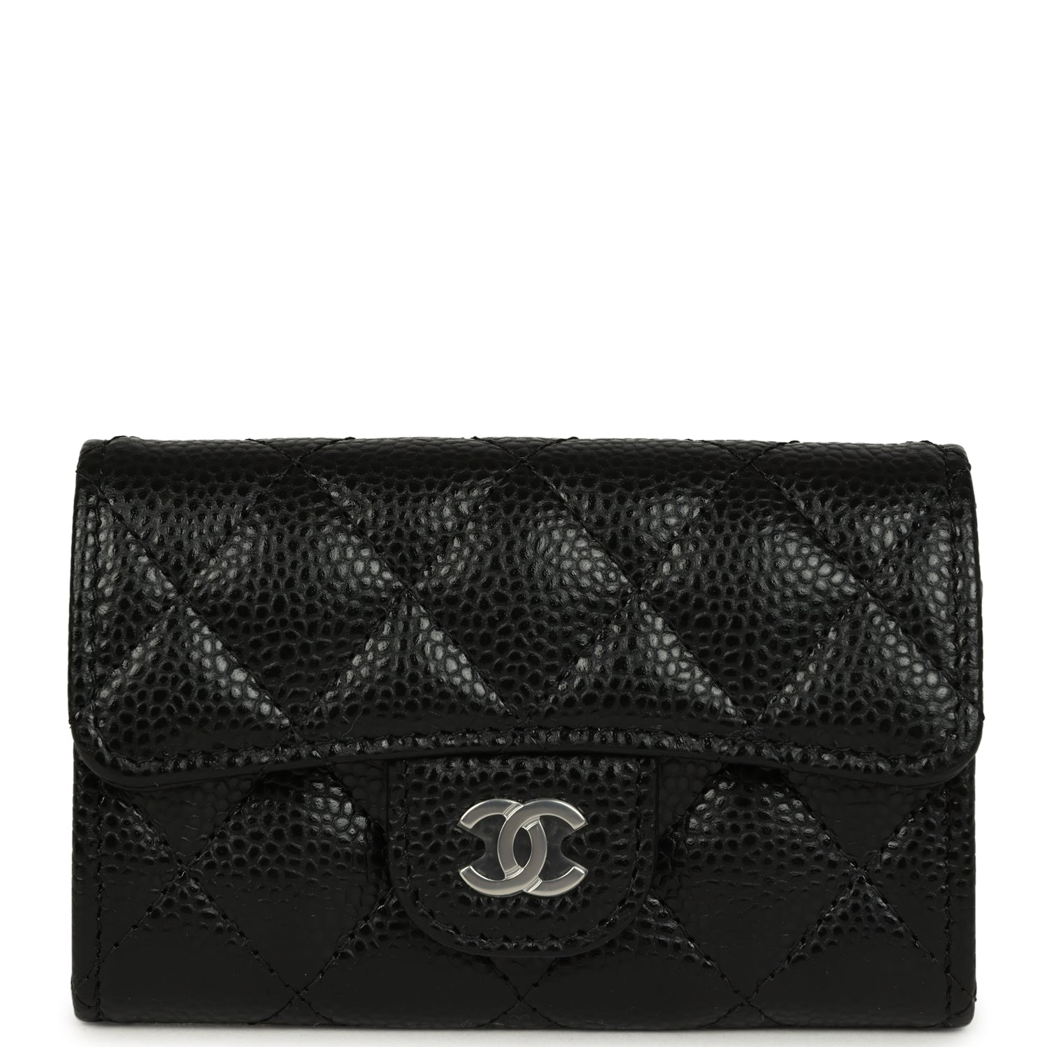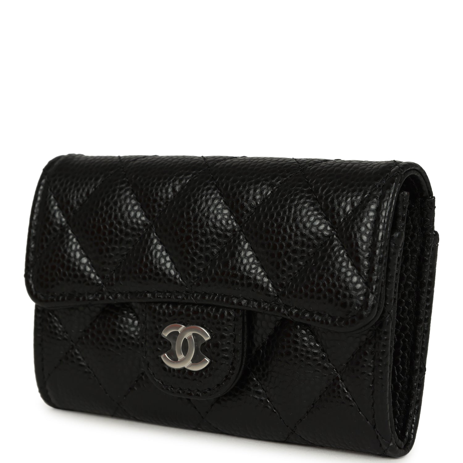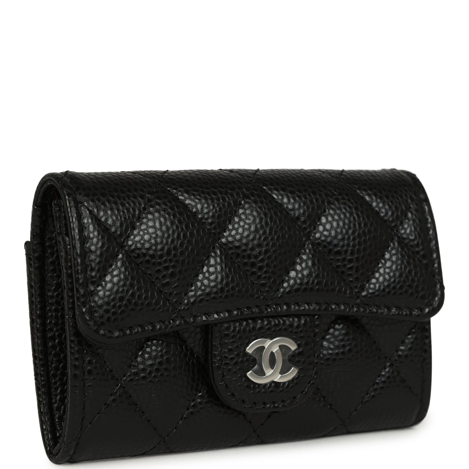 • Chanel Classic Card Holder Wallet Black Caviar Silver Hardware