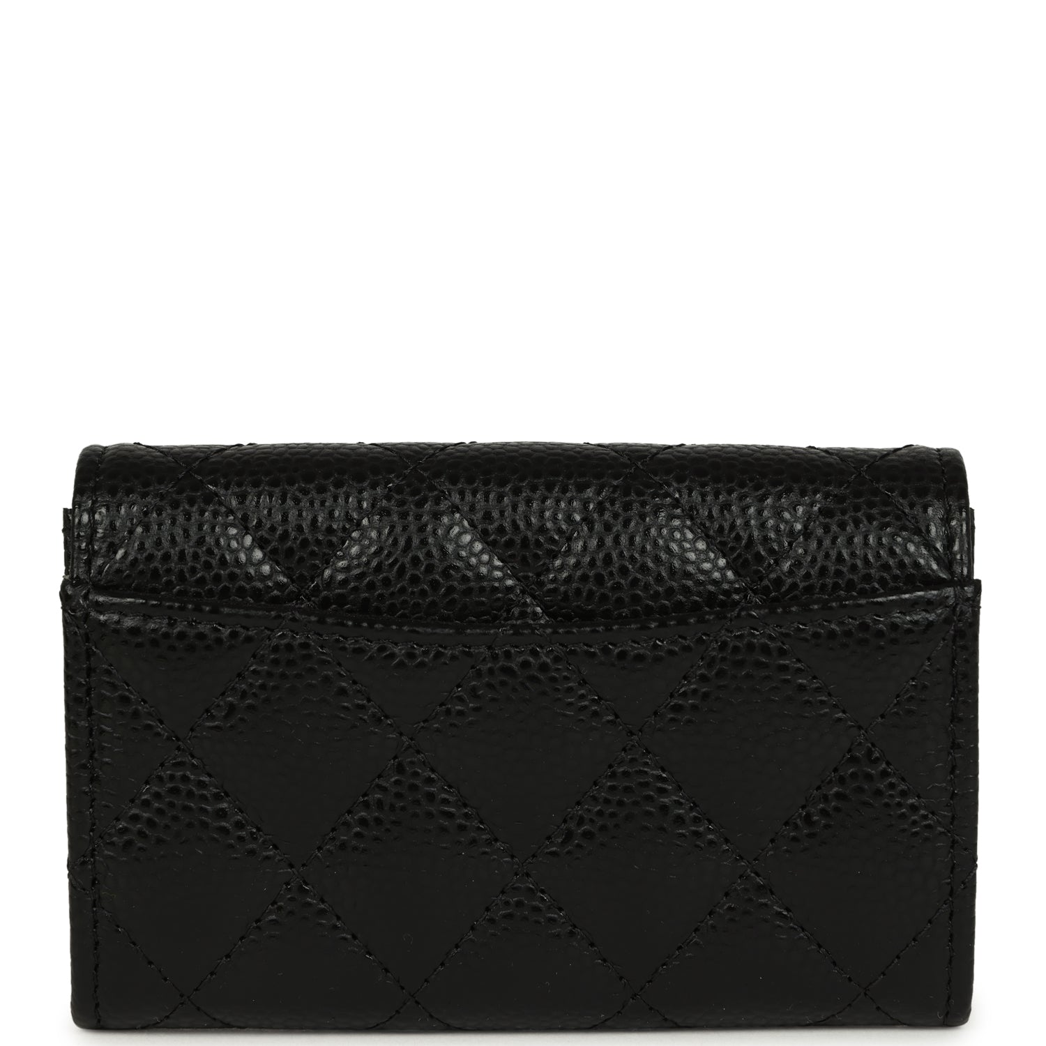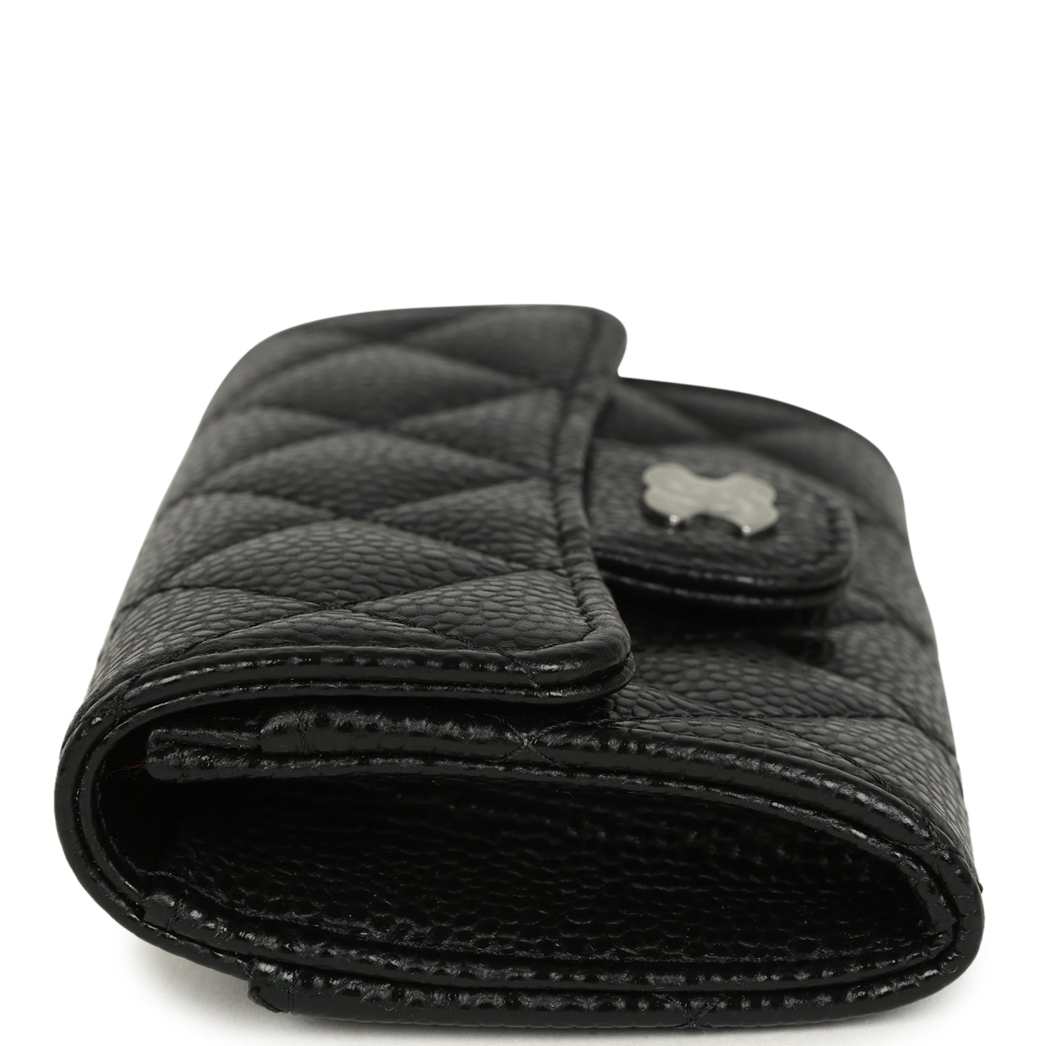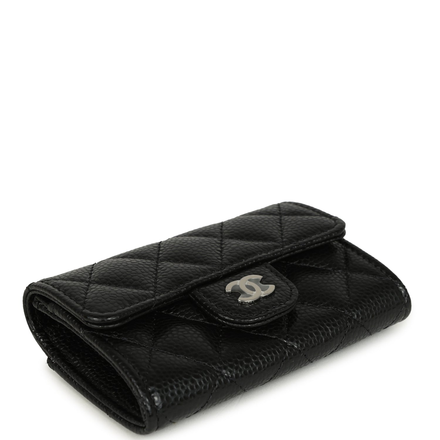 • Chanel Classic Card Holder Wallet Black Caviar Silver Hardware