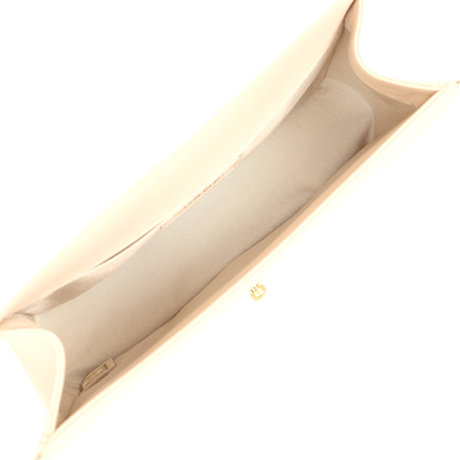 The interior is lined in beige grossgrain fabric with an open pocket on rear wall.