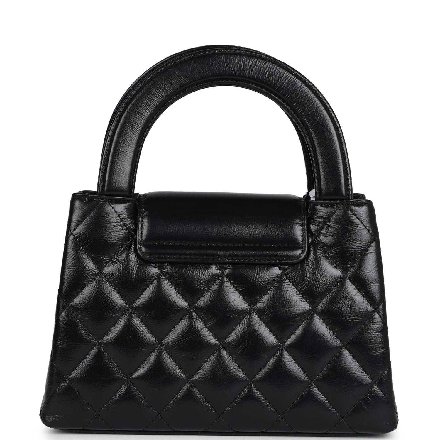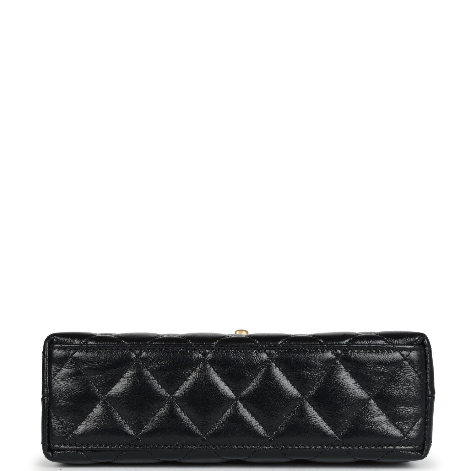 This Small Kelly is in black shiny aged calfskin with brushed gold hardware. tonal stitching. two flat back top handles. interwoven brushed gold and black leather shoulder strap. and the signature CC turnlock closure.