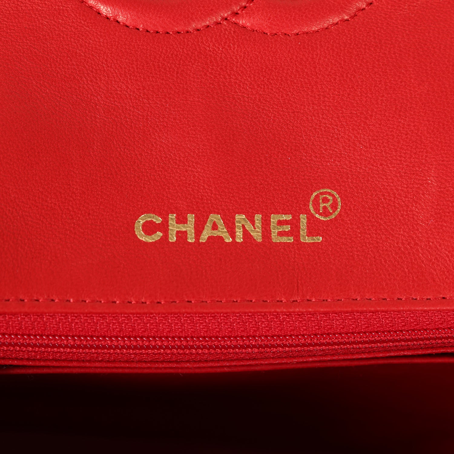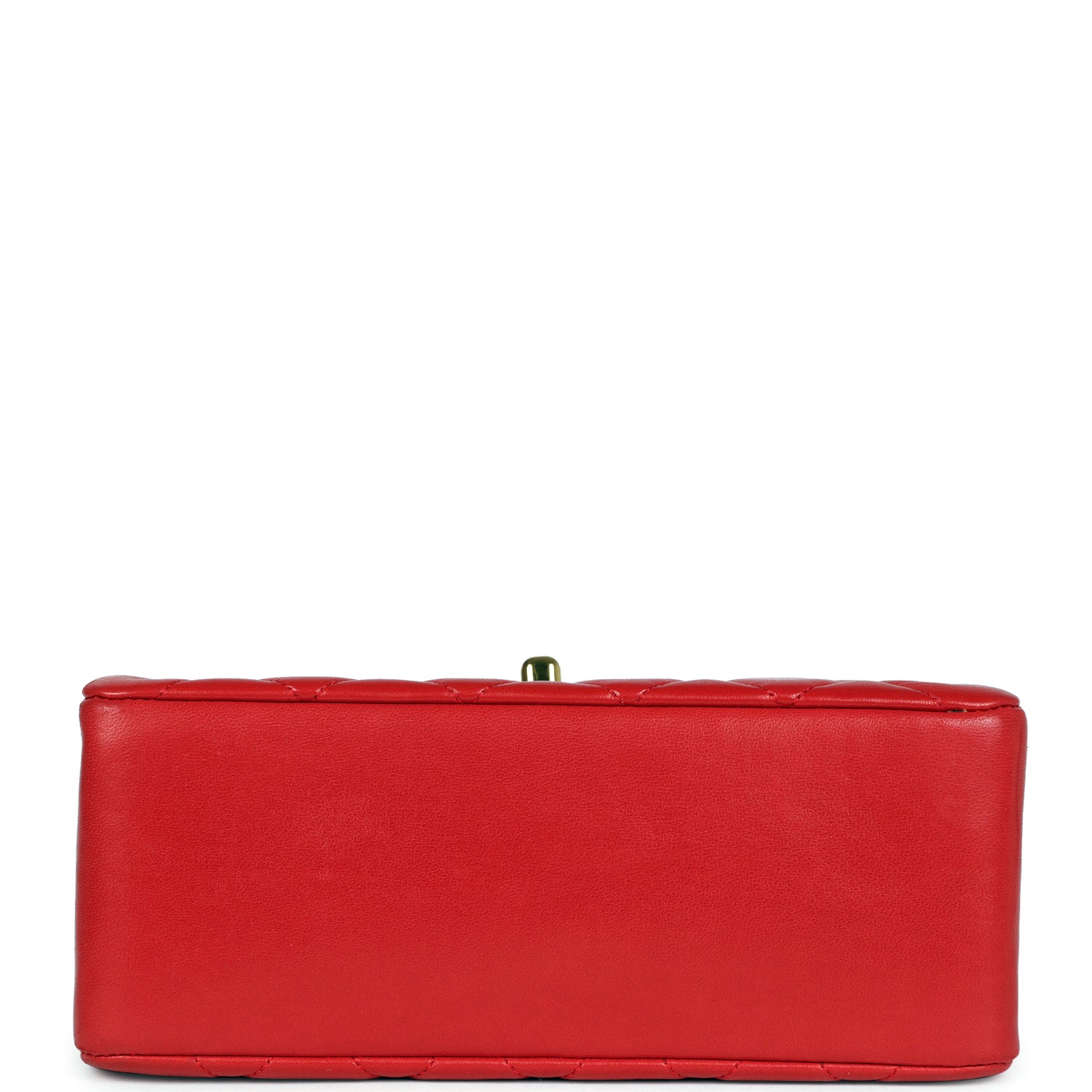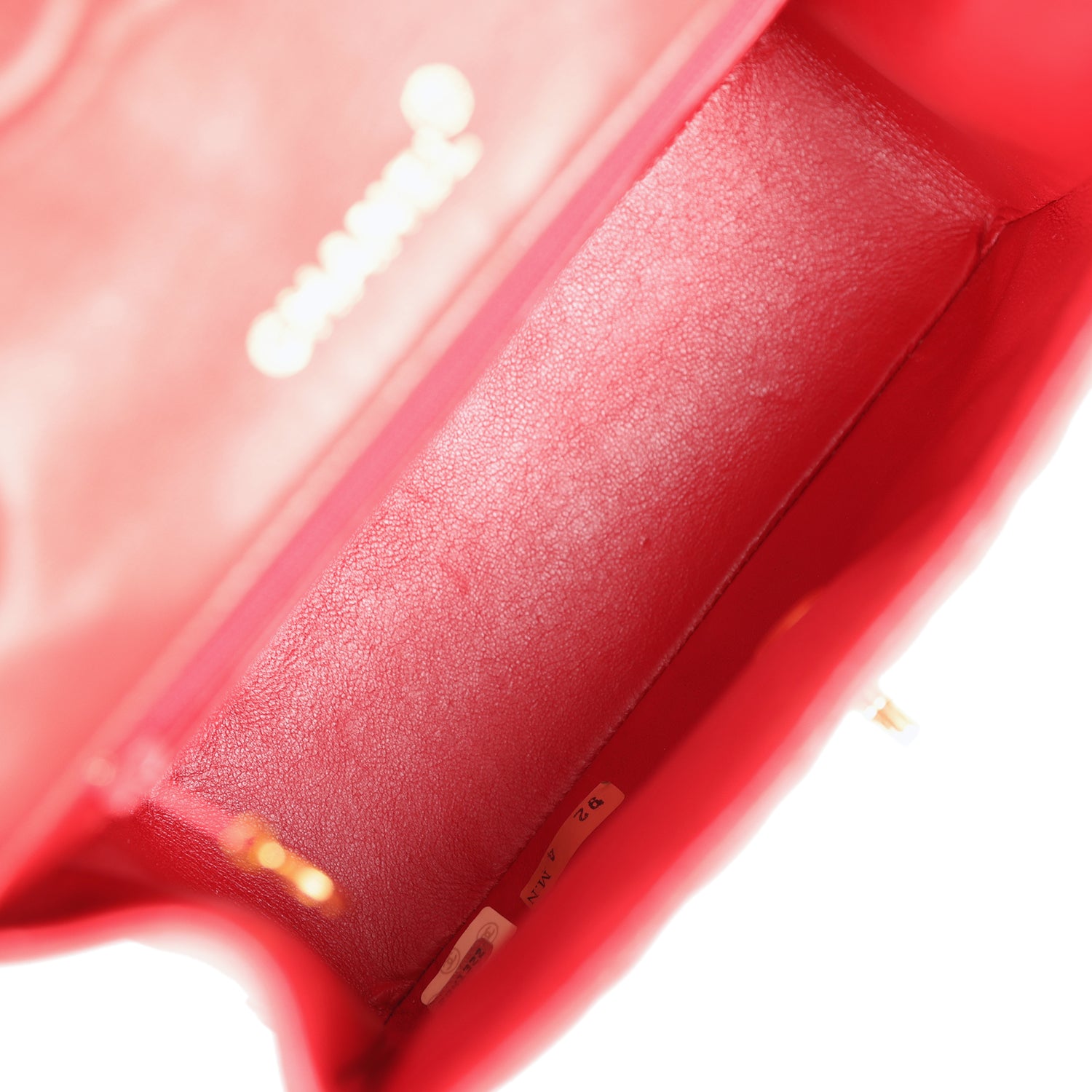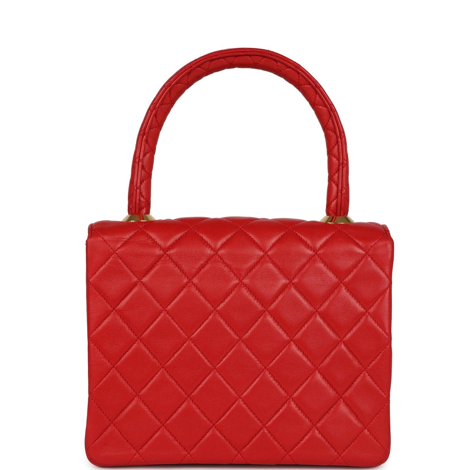 This Vintage Top Handle Flap Flap Bag is in Red lambskin leather with gold hardware. featuring the signature CC turnlock closures with front flap. and a red rolled top handle.