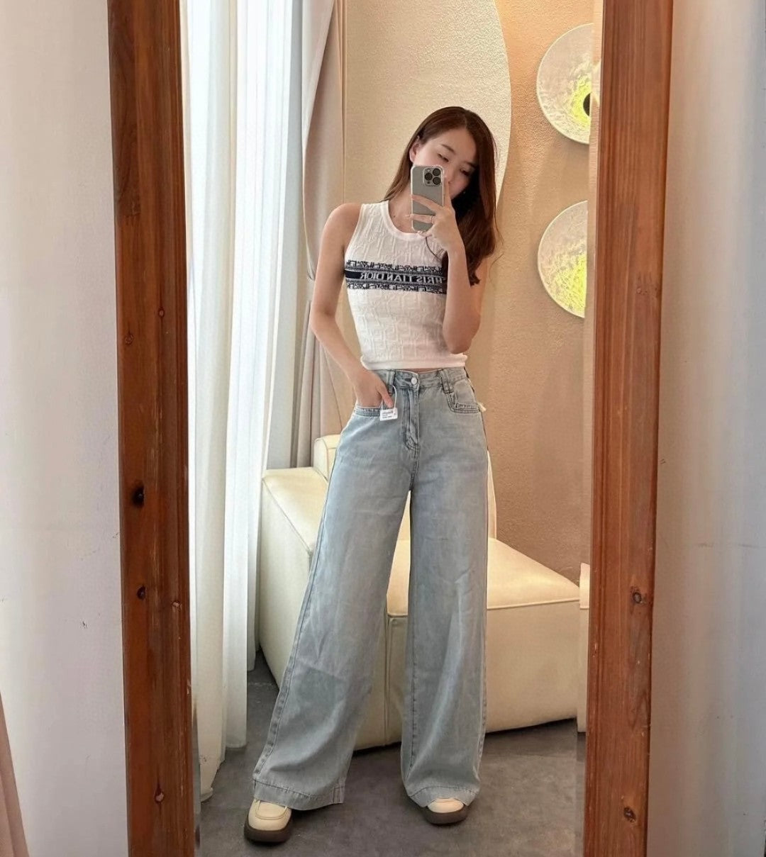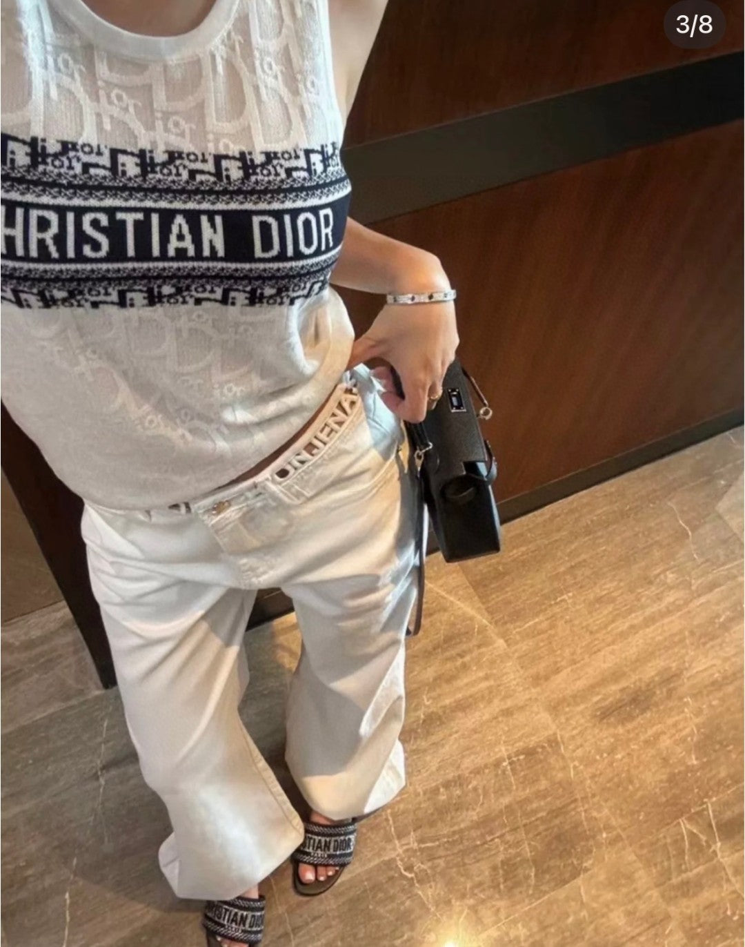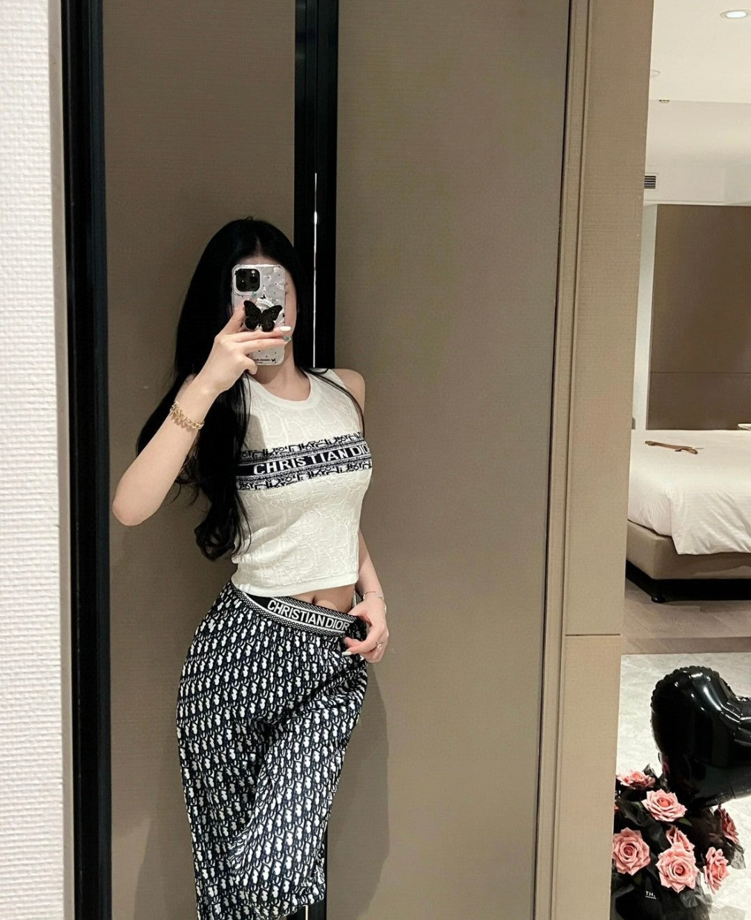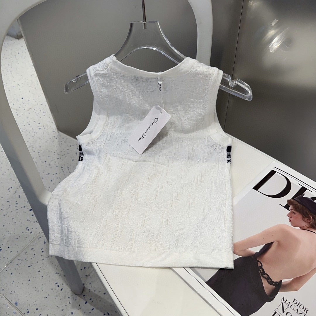 SLEEVELESS TOP 643222 IN WHITE COTTON BLACK LOGO