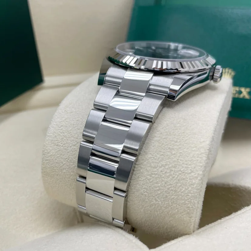 The Rolex fluted bezel is a mark of distinction. Originally. the fluting of the Oyster bezel had a functional purpose: it served to screw the bezel onto the case helping to ensure the waterproofness of the watch. It was therefore identical to the fluting on the case back. which was also screwed onto the case for waterproofness. using specific Rolex tools. Over time. the fluting became an aesthetic element. a genuine Rolex signature feature. Today the fluted bezel is a mark of distinction. in gold on this Datejust 41.