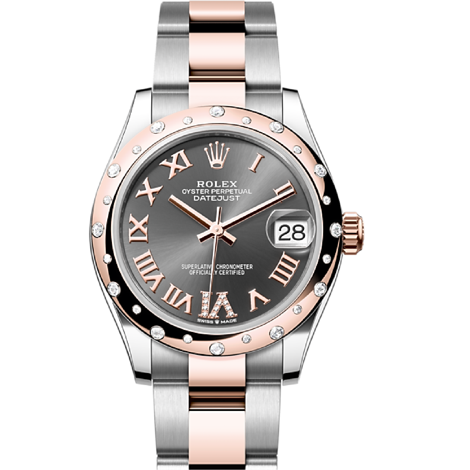 Oyster. 31 mm. Oystersteel. Everose gold and diamonds