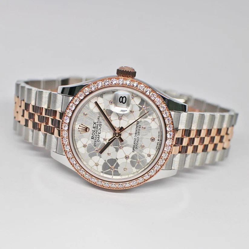 Oyster. 31 mm. Oystersteel. Everose gold and diamonds