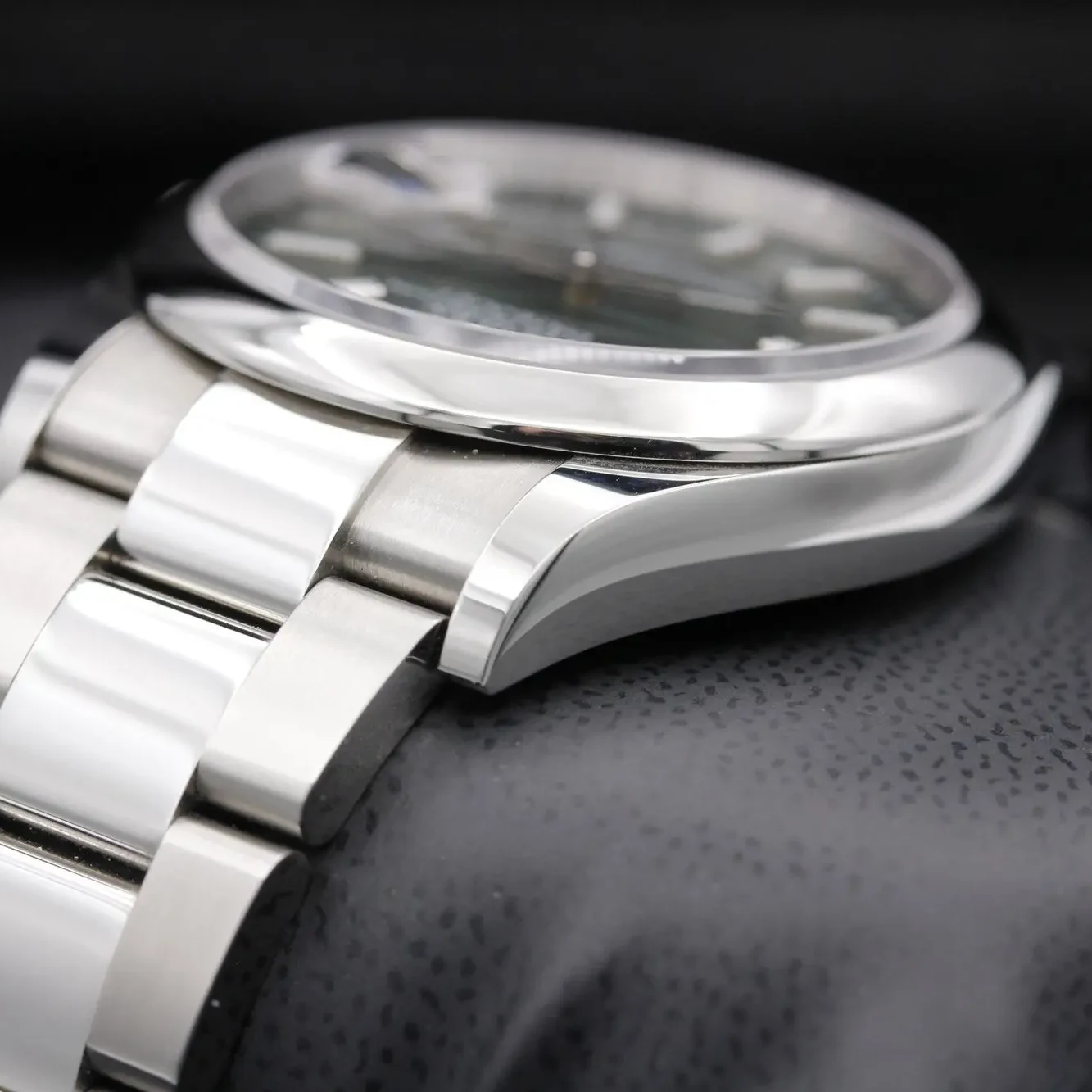 The Oyster bracelet is a perfect alchemy of form and function. aesthetics�and technology. designed to be both robust and comfortable. It�is equipped with an Oysterclasp and the Easylink comfort extension link. also exclusive to Rolex. This ingenious system allows the wearer to increase the bracelet length by approximately 5 mm. providing additional comfort in any circumstance.
