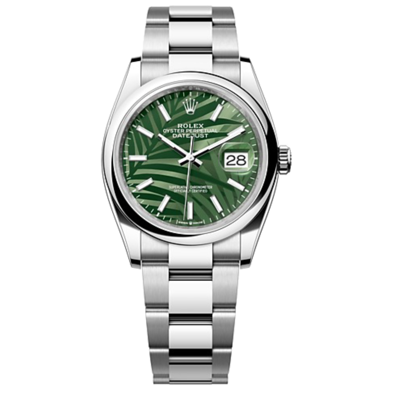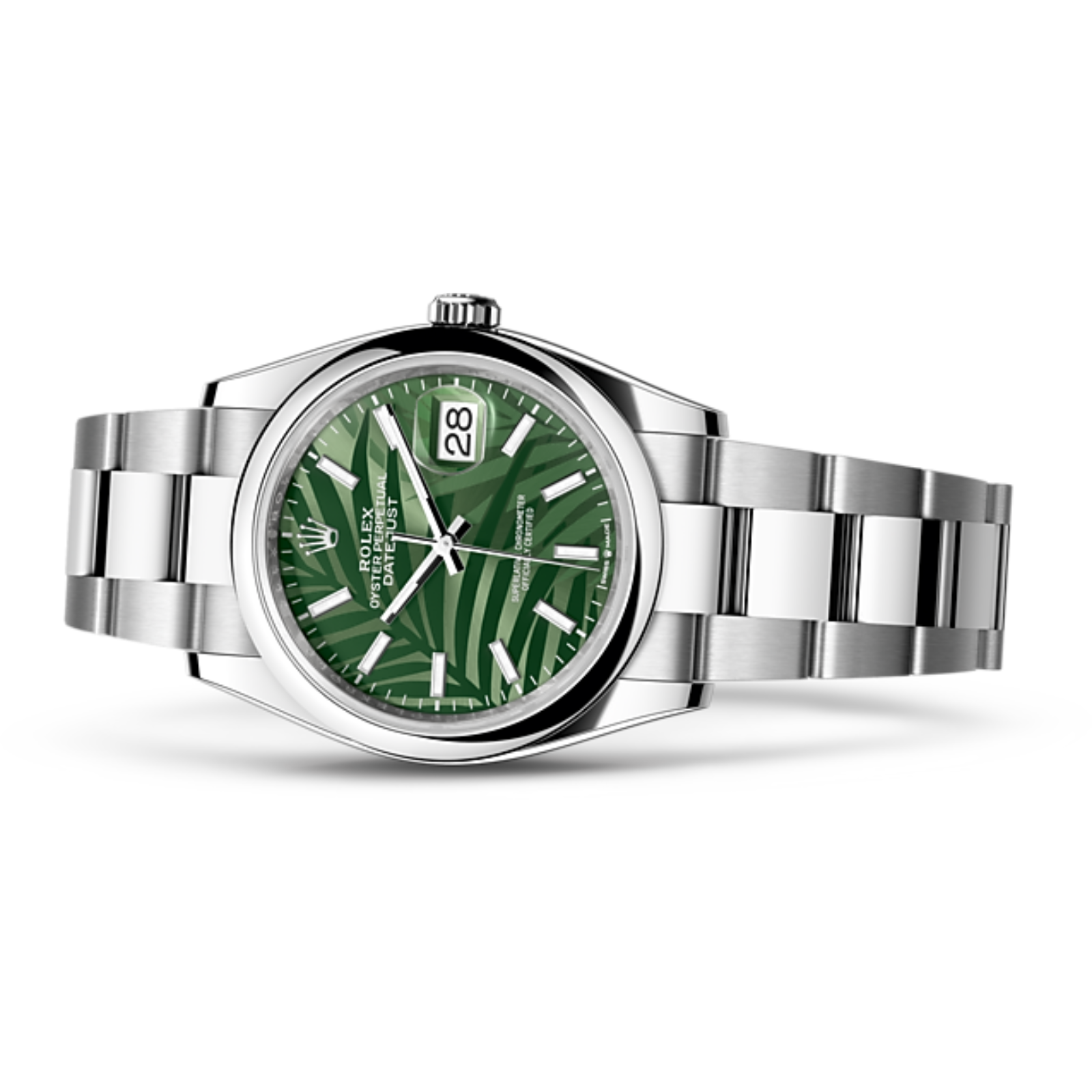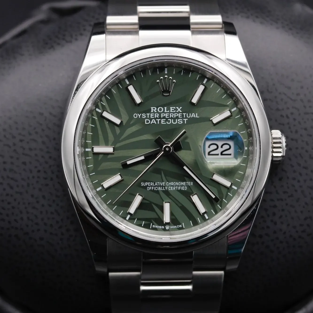Rolex has the necessary know-how and equipment to regularly create new looks for the dials of its watches. The brand's designers took the traditional sunray finish �� a characteristic feature of Rolex dials �� as the backdrop onto which a motif is engraved with a femtosecond laser. which uses ultrashort electromagnetic pulses to finely mark the surface. Inspired by lush vegetation. the 'palm' motif depicts palm branches whose overlapping fronds create effects of light and shade.