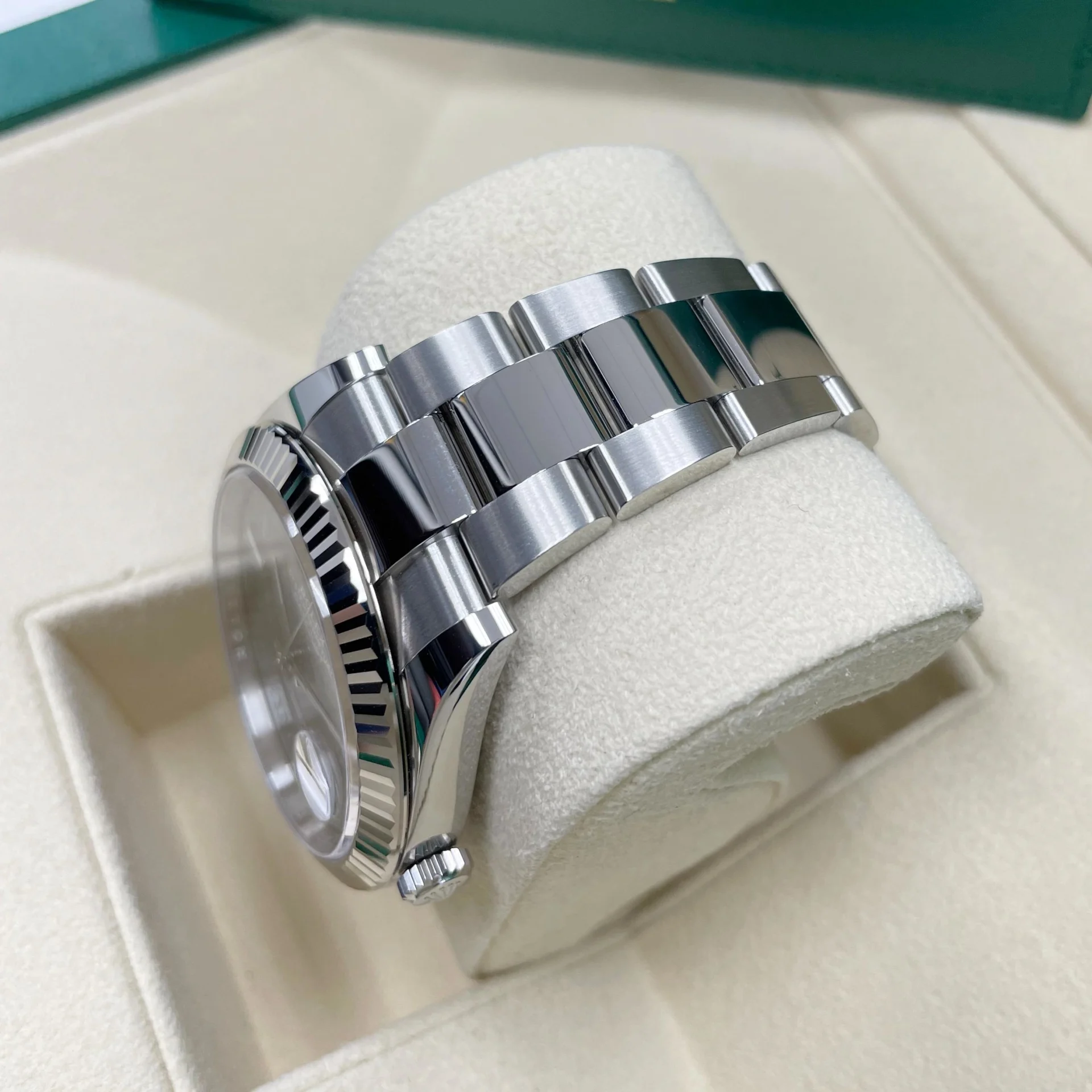 The Rolex fluted bezel is a mark of distinction. Originally. the fluting of the Oyster bezel had a functional purpose: it served to screw the bezel onto the case helping to ensure the waterproofness of the watch. It was therefore identical to the fluting on the case back. which was also screwed onto the case for waterproofness. using specific Rolex tools. Over time. the fluting became an aesthetic element. a genuine Rolex signature feature. Today the fluted bezel is a mark of distinction. in gold on this Datejust 41.