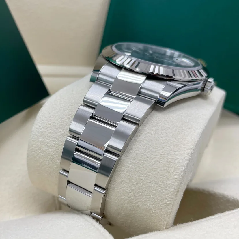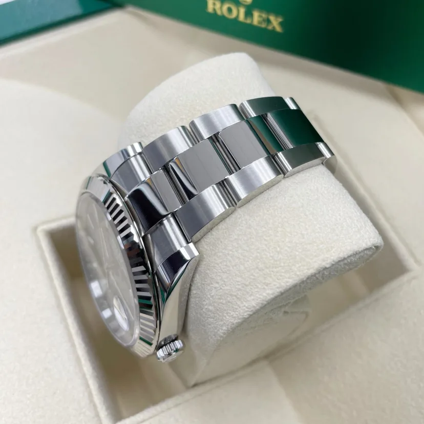 The Rolex fluted bezel is a mark of distinction. Originally. the fluting of the Oyster bezel had a functional purpose: it served to screw the bezel onto the case helping to ensure the waterproofness of the watch. It was therefore identical to the fluting on the case back. which was also screwed onto the case for waterproofness. using specific Rolex tools. Over time. the fluting became an aesthetic element. a genuine Rolex signature feature. Today the fluted bezel is a mark of distinction. in gold on this Datejust 41.