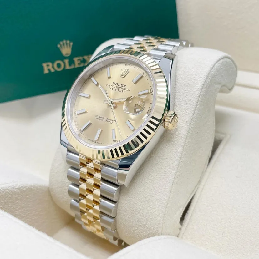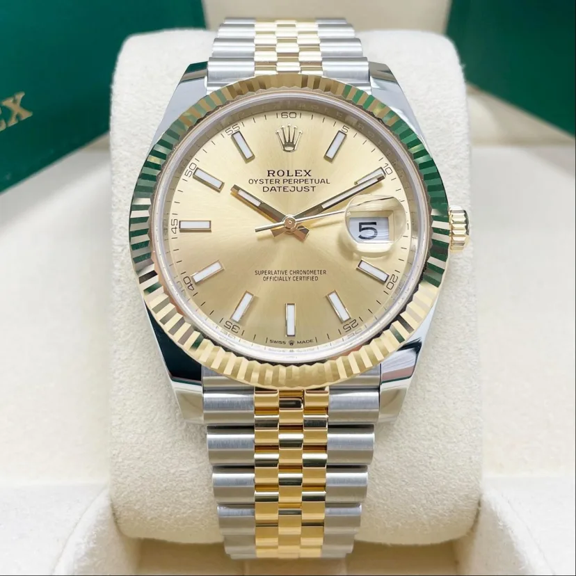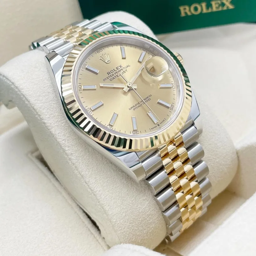 The Rolex fluted bezel is a mark of distinction. Originally. the fluting of the Oyster bezel had a functional purpose: it served to screw the bezel onto the case helping to ensure the waterproofness of the watch. It was therefore identical to the fluting on the case back. which was also screwed onto the case for waterproofness. using specific Rolex tools. Over time. the fluting became an aesthetic element. a genuine Rolex signature feature. Today the fluted bezel is a mark of distinction. in gold on this Datejust 41.