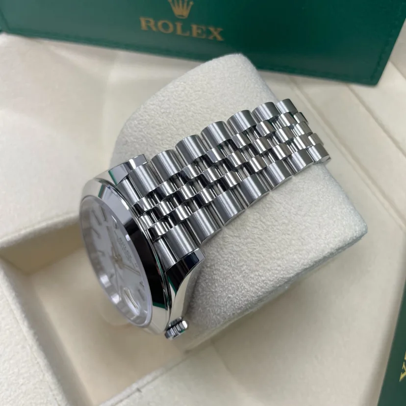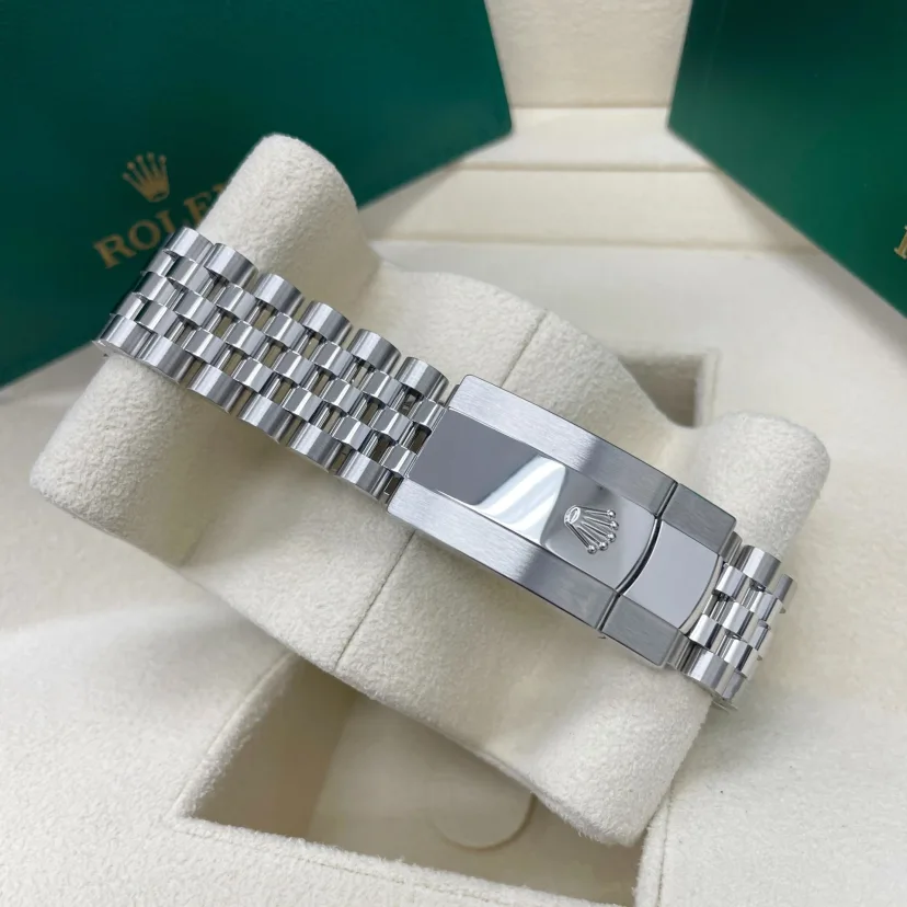 The Oyster bracelet is a perfect alchemy of form and function. aesthetics�and technology. designed to be both robust and comfortable. It�is equipped with an Oysterclasp and the Easylink comfort extension link. also exclusive to Rolex. This ingenious system allows the wearer to increase the bracelet length by approximately 5 mm. providing additional comfort in any circumstance.