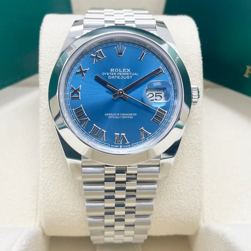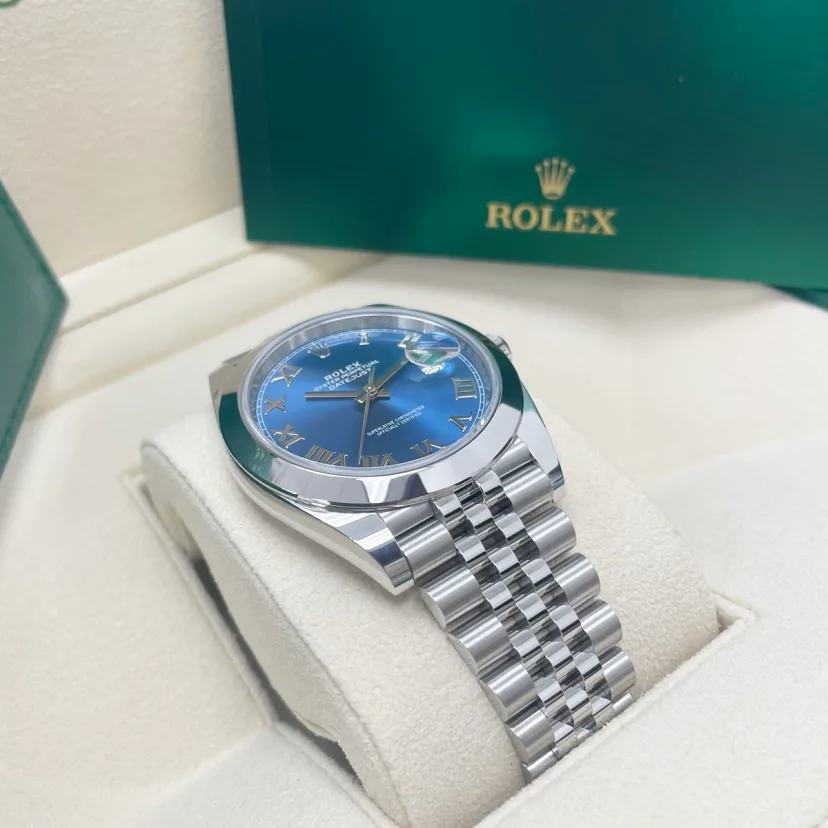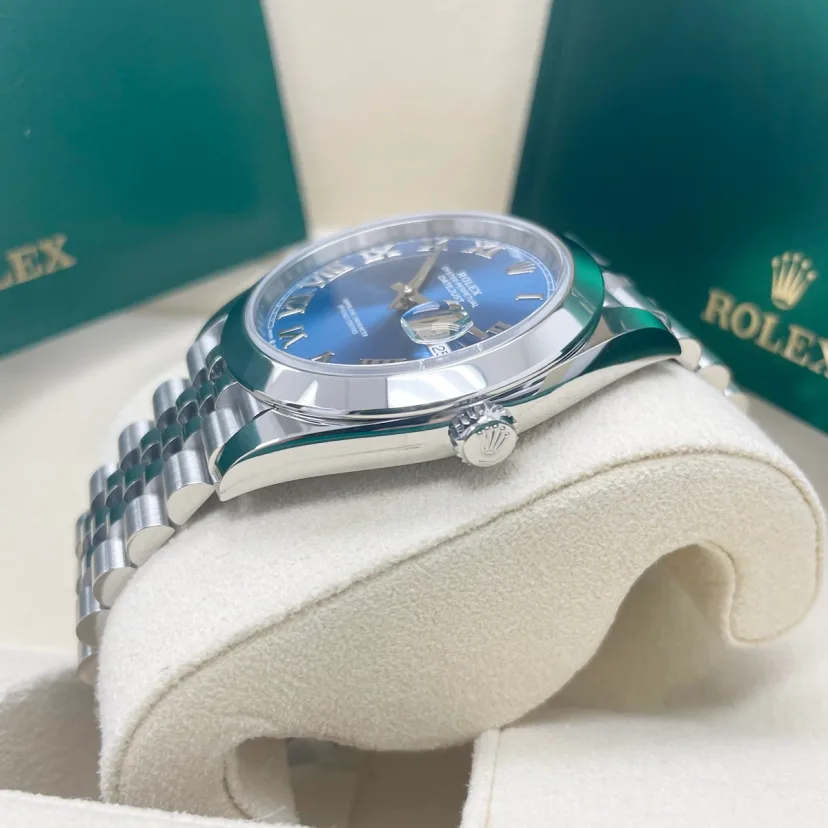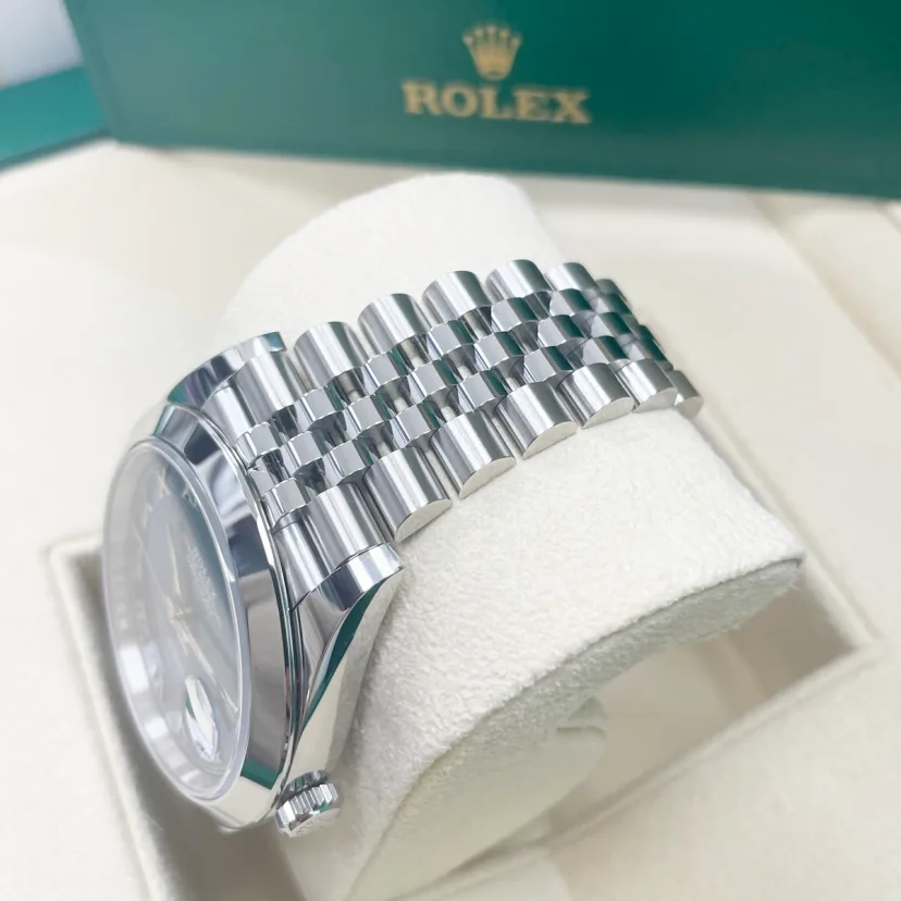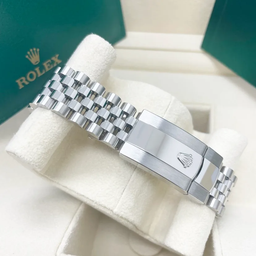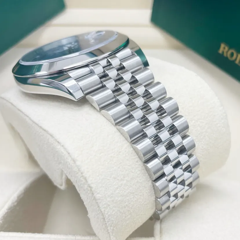 The design. development and production of Rolex bracelets and clasps. as well as the stringent tests they face. involve advanced high technology. And. as with all the components of the watch. aesthetic controls by the human eye guarantee impeccable beauty. The Jubilee. a supple and comfortable five-piece link metal bracelet. was designed and made especially for the launch of the Oyster Perpetual Datejust in 1945.