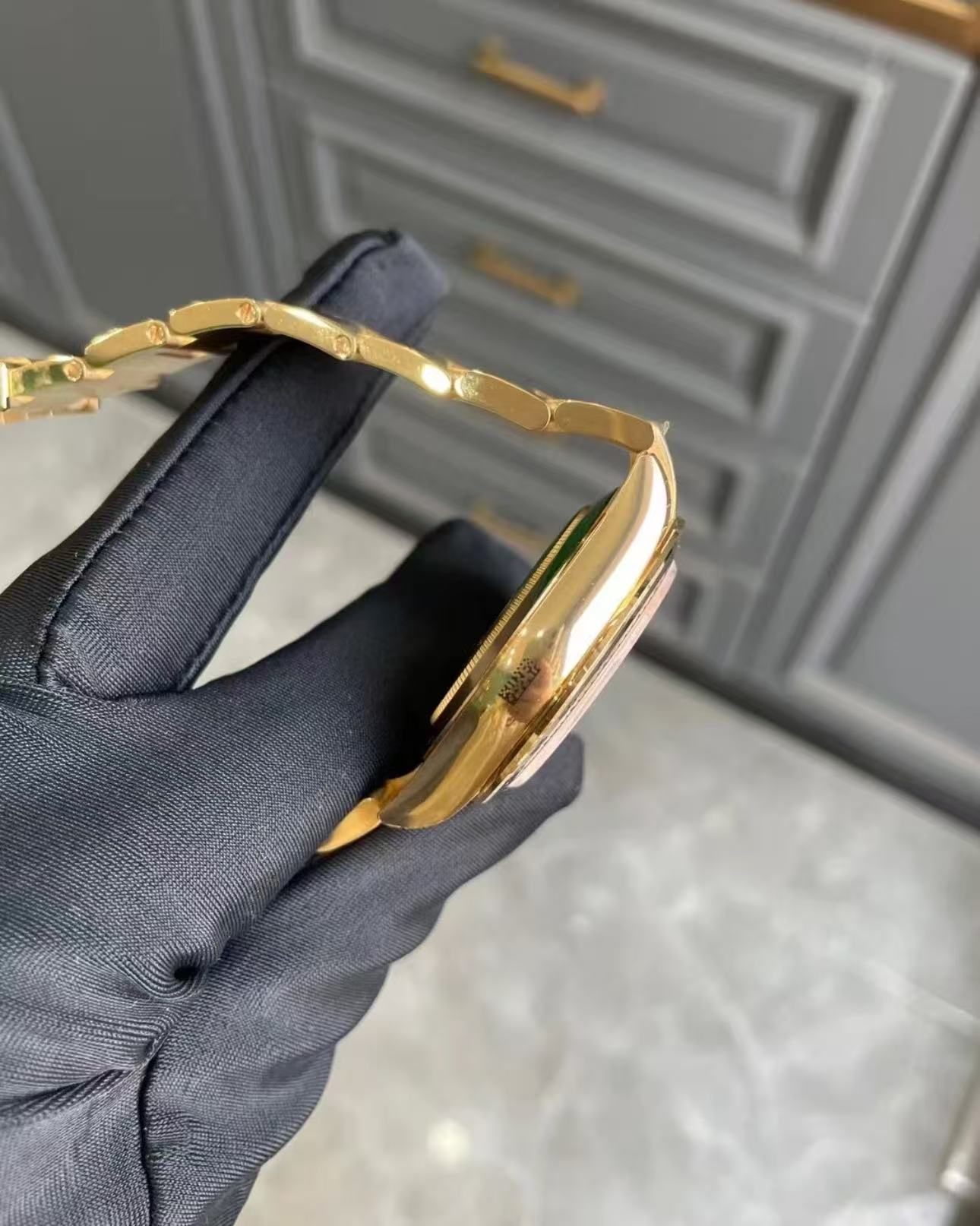 - AAA: It’s equipped with a Swiss movement and has a case thickness of 12.6mm, compared to the 12.2mm thickness of the Superclone and original.