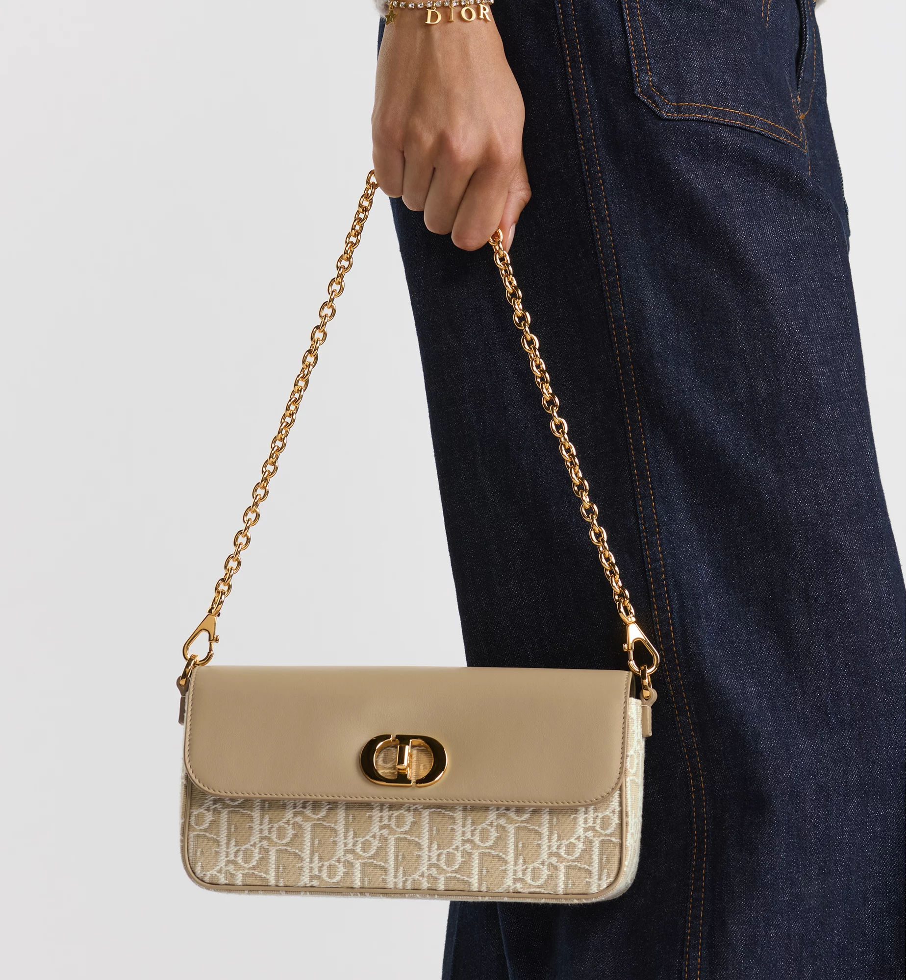 Description: This 30 Montaigne Avenue East-West handbag with mini chain on both shoulders is a new product of winter ready-to-wear series in 2024. which is fashionable and elegant. Carefully made of blue Oblique printed fabric. cow leather flip cover with smooth tone is decorated with retro gold decorative metal CD buckle ring. inspired by the seal of Christian Dior perfume bottle. with practical internal space. With detachable chain shoulder strap and adjustable and detachable leather shoulder strap. it can be carried by hand. shoulder or slung sideways. making it an ideal choice for everyday or evening dress modeling.