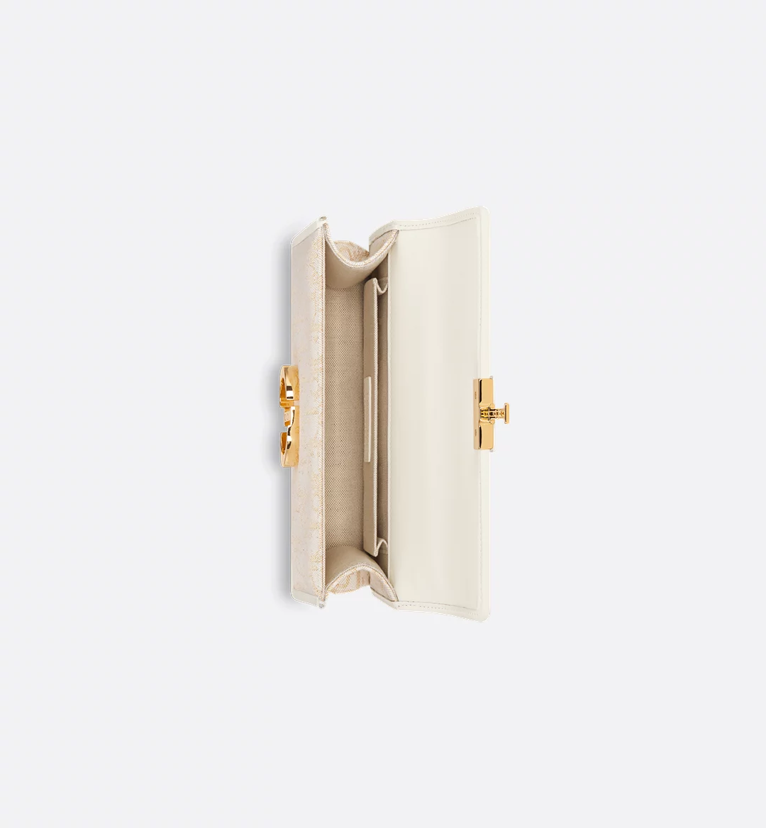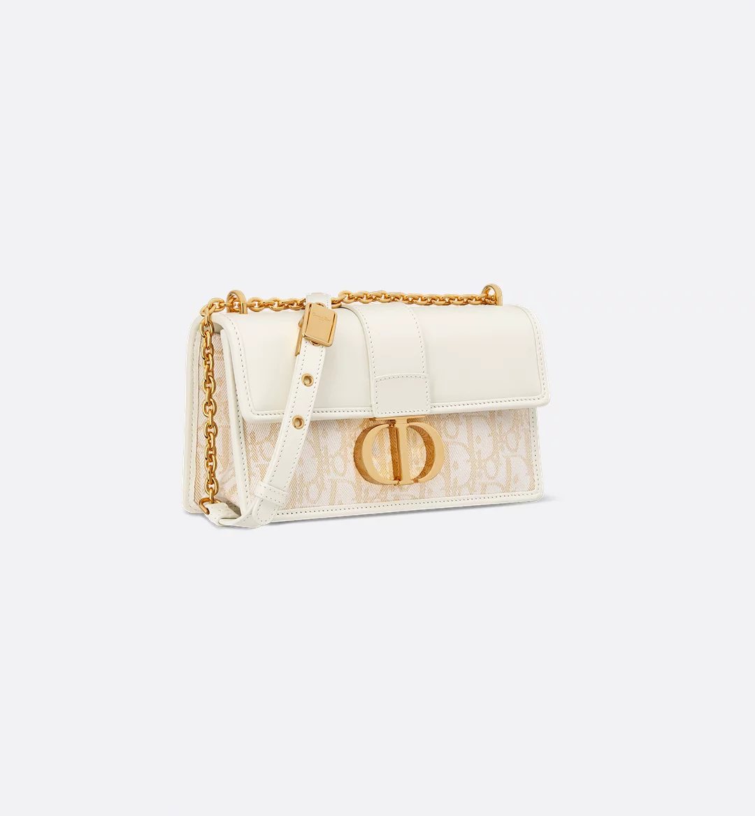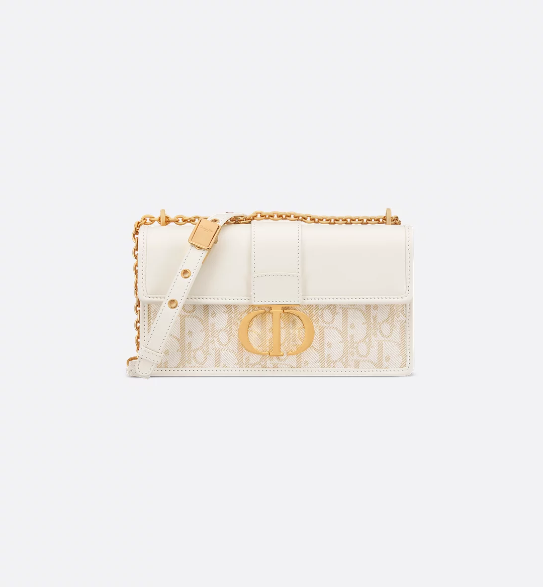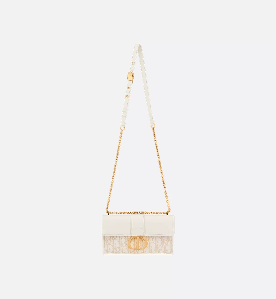 Oblique printing in creamy white smooth cow leather and denim fabric with gold metallic luster line decoration.