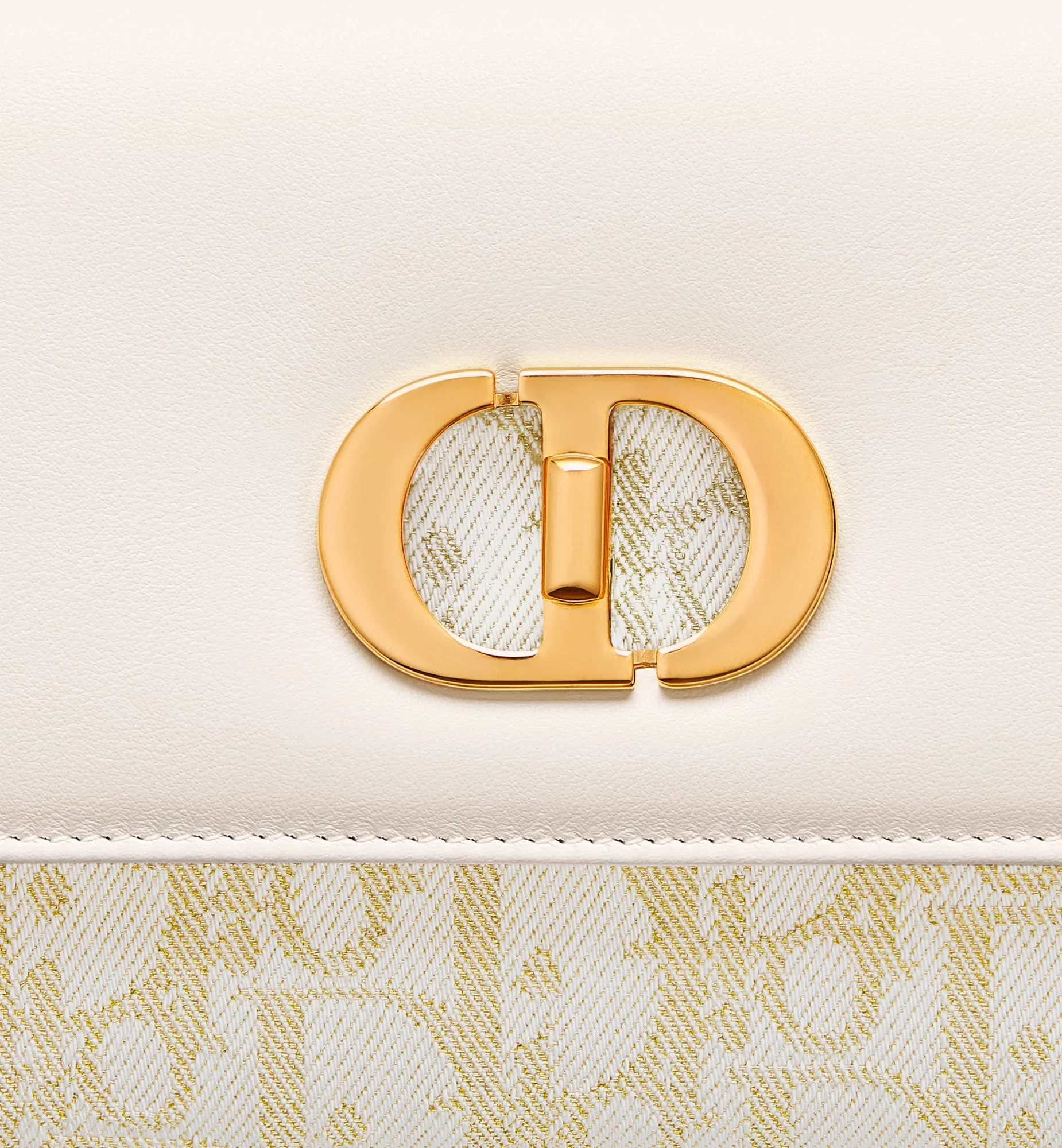 Description: This 30 Montaigne Top Handle handbag is a new product of the early spring ready-to-wear series in 2025. and it is a basic item showing elegant charm. Gold tone Oblique print with white smooth cow leather. flip cover decorated with retro gold decorative metal CD logo. compartment can accommodate all kinds of daily necessities. With a foldable top handle. it can be carried by hand to enhance the exquisite appearance.