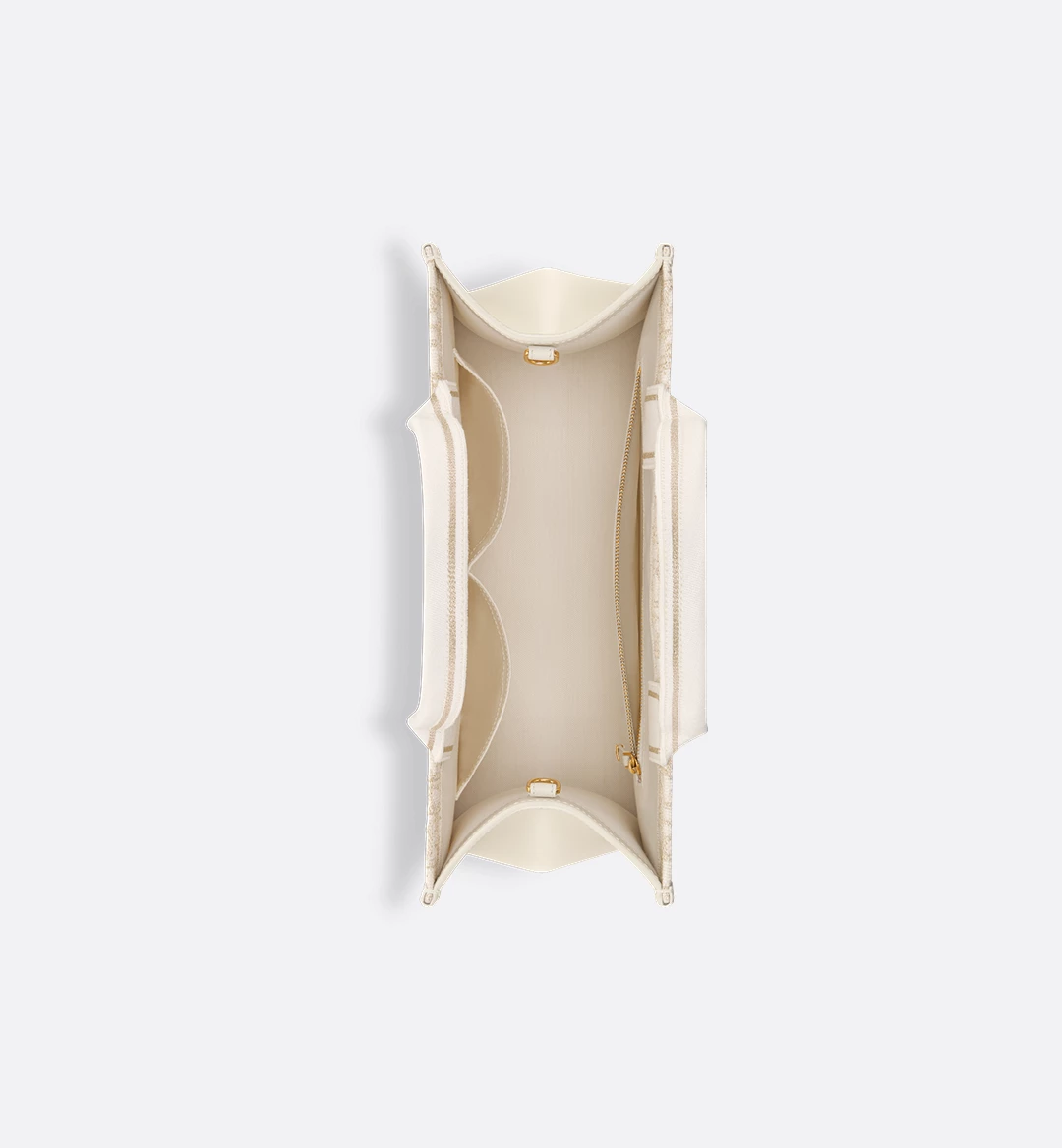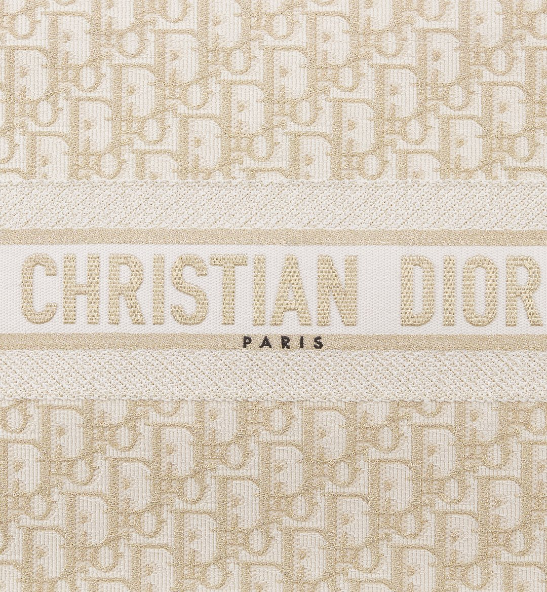 Oblique printed fabric with gold metallic luster thread and milky white cow leather (36.5x28x16.5cm).