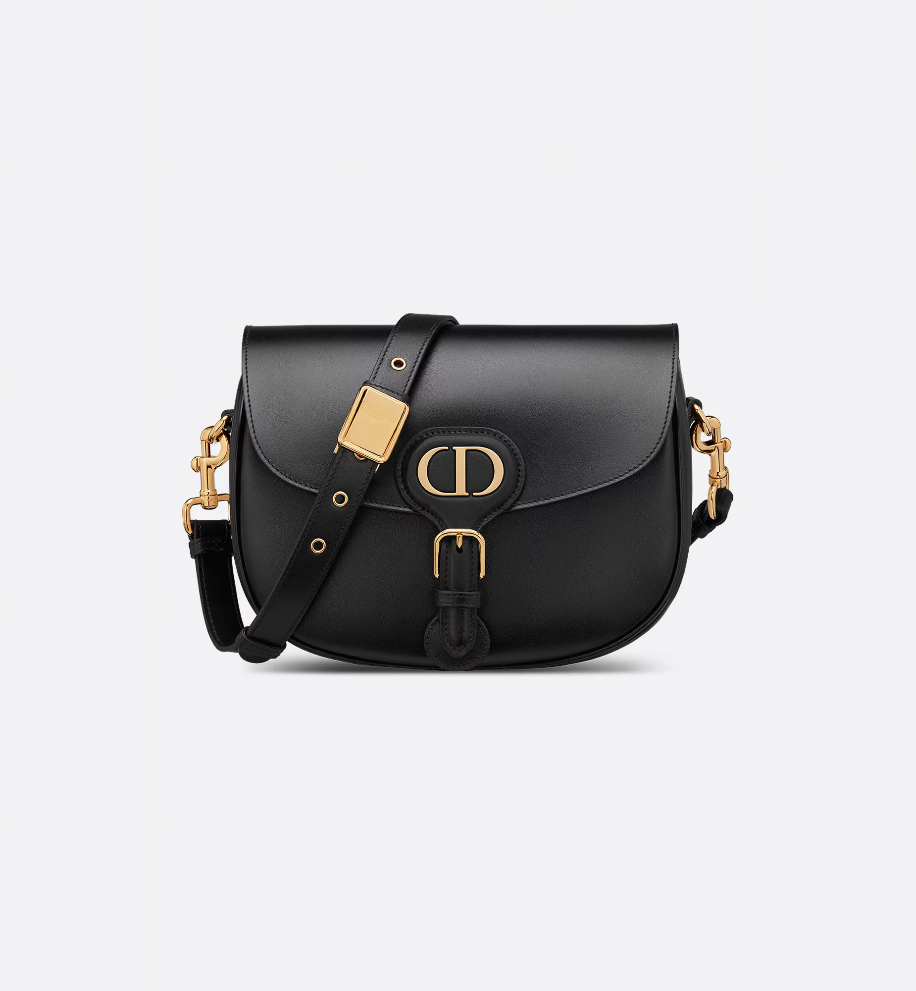 Description: This Dior Bobby handbag is a dumpling bag style. showing elegant outline and harmonious proportion. Made of black glossy cow leather. it is decorated with retro gold decorative metal fittings to enhance the style. The interior is designed with suede cow leather. which adds a soft texture. Medium style. with adjustable and detachable sliding buckle shoulder strap. embellished with military style buckle. which can be carried. shouldered or slung.