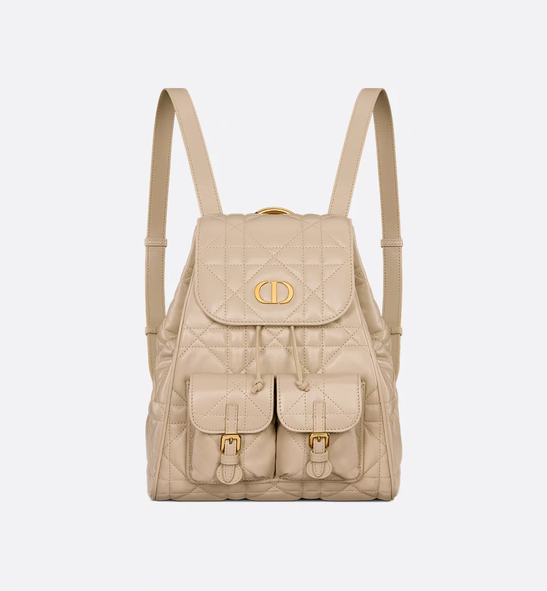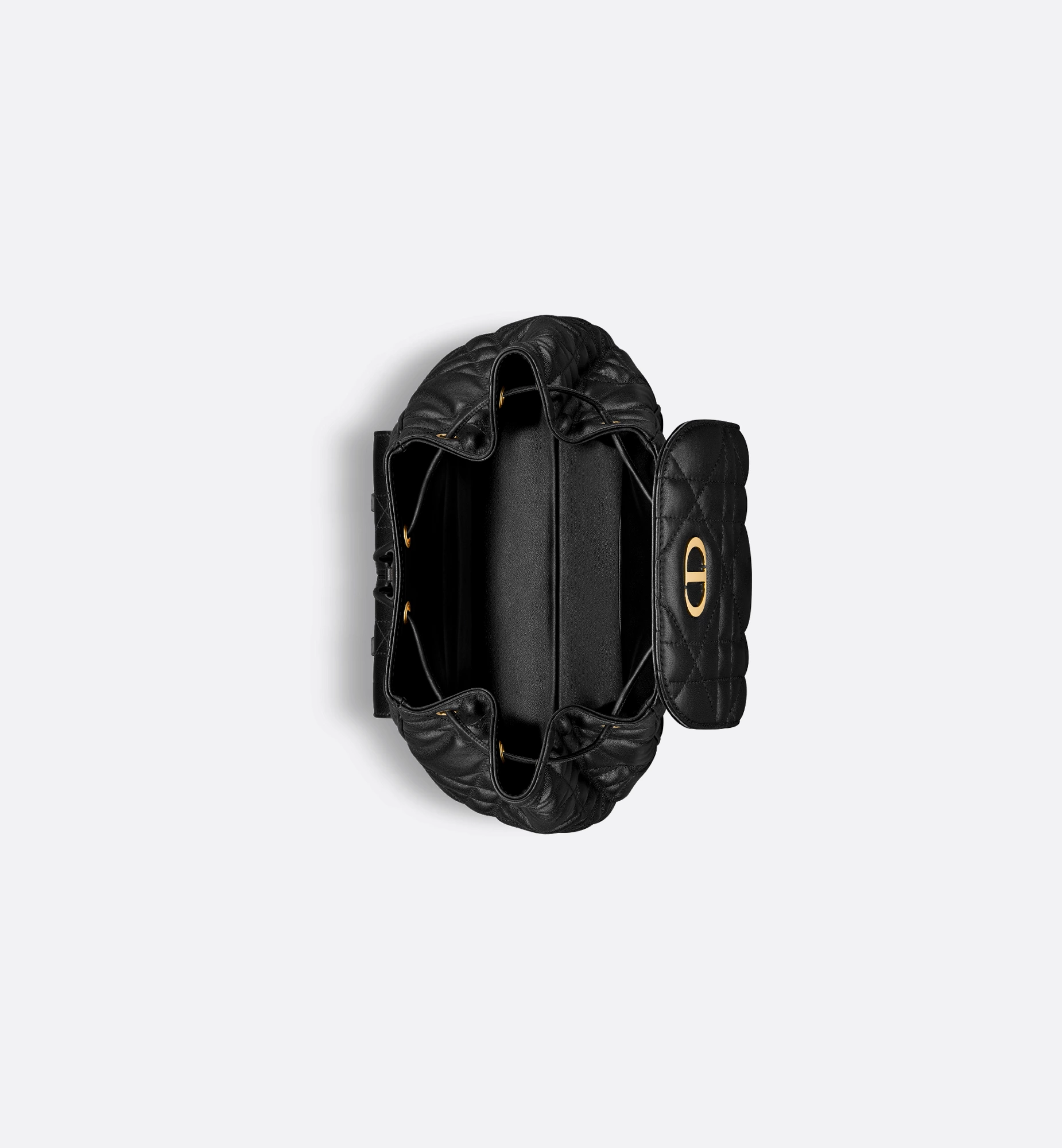 Description: This Dior Caro backpack is a new product of the ready-to-wear series in the early spring of 2025. which shows fashion and elegance. Made of black sheep leather and other materials. with super-large rattan plaid thread to enhance the style. the flip cover is decorated with retro gold decorative metal CD logo. which is a spacious drawstring main compartment after opening. and two small flip pockets can accommodate various small daily necessities. Medium style. with gold decorative handle and adjustable shoulder strap for added comfort.