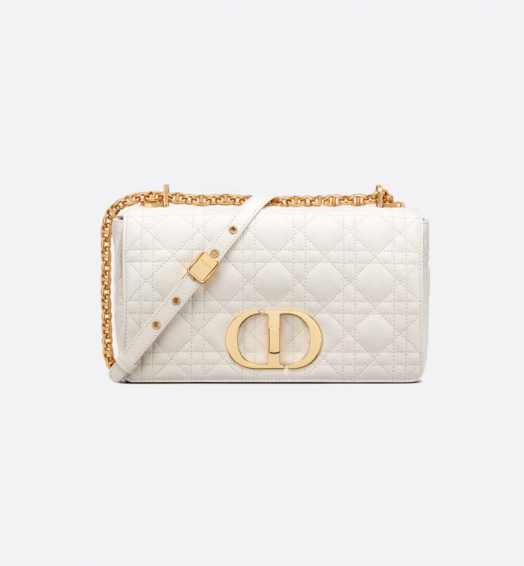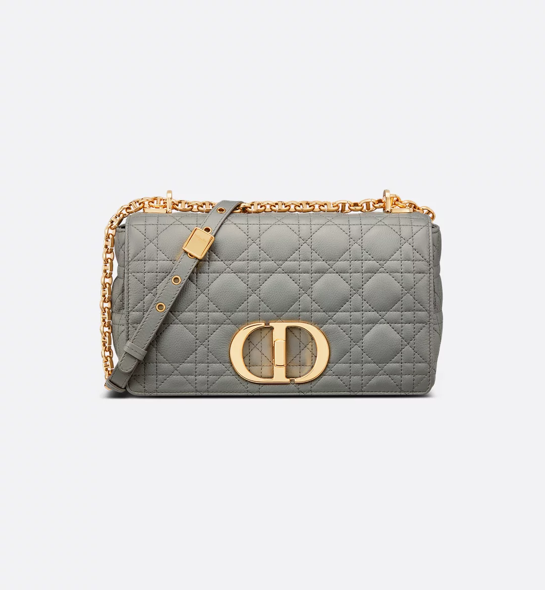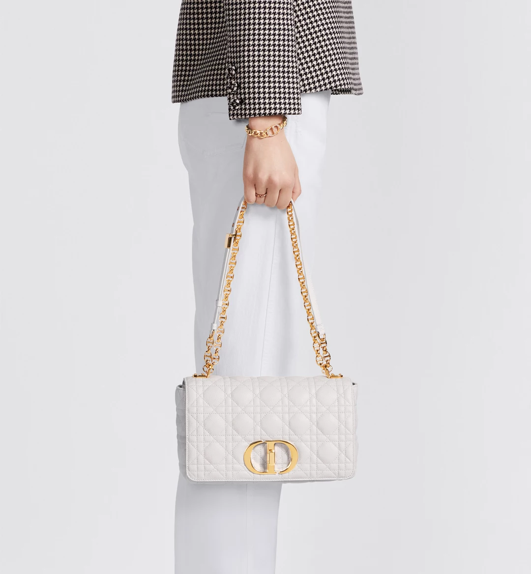 Description: This Dior Caro handbag combines elegance and modern style. Made of black soft cow leather and other materials. it is decorated with rattan check thread. The flip cover is decorated with a metal knob CD buckle with retro gold finish. inspired by the seal of Christian Dior perfume bottle. Medium style. with detachable CD logo link shoulder strap. can be carried by hand. shoulder or slung sideways. and can also be replaced by Dior embroidered wide shoulder strap to embellish daily styling or make a bright finishing touch for evening wear.