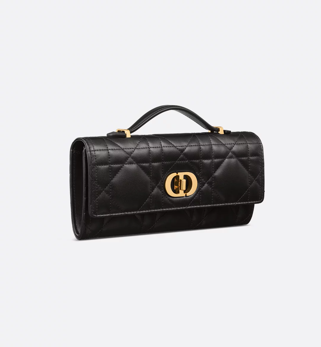 Description: This Miss Caro Top Handle clutch bag is a new product of the early spring ready-to-wear series in 2025. and it is a daily item that shows exquisite charm. Made of black sheep leather. it is decorated with super-large rattan check thread to enhance the style. and the flip cover is decorated with retro gold decorative metal knob CD buckle. inspired by the seal of Christian Dior perfume bottle. with a compartment. which can store all kinds of daily necessities. With a foldable top handle. it can be carried by hand to enhance the exquisite appearance.