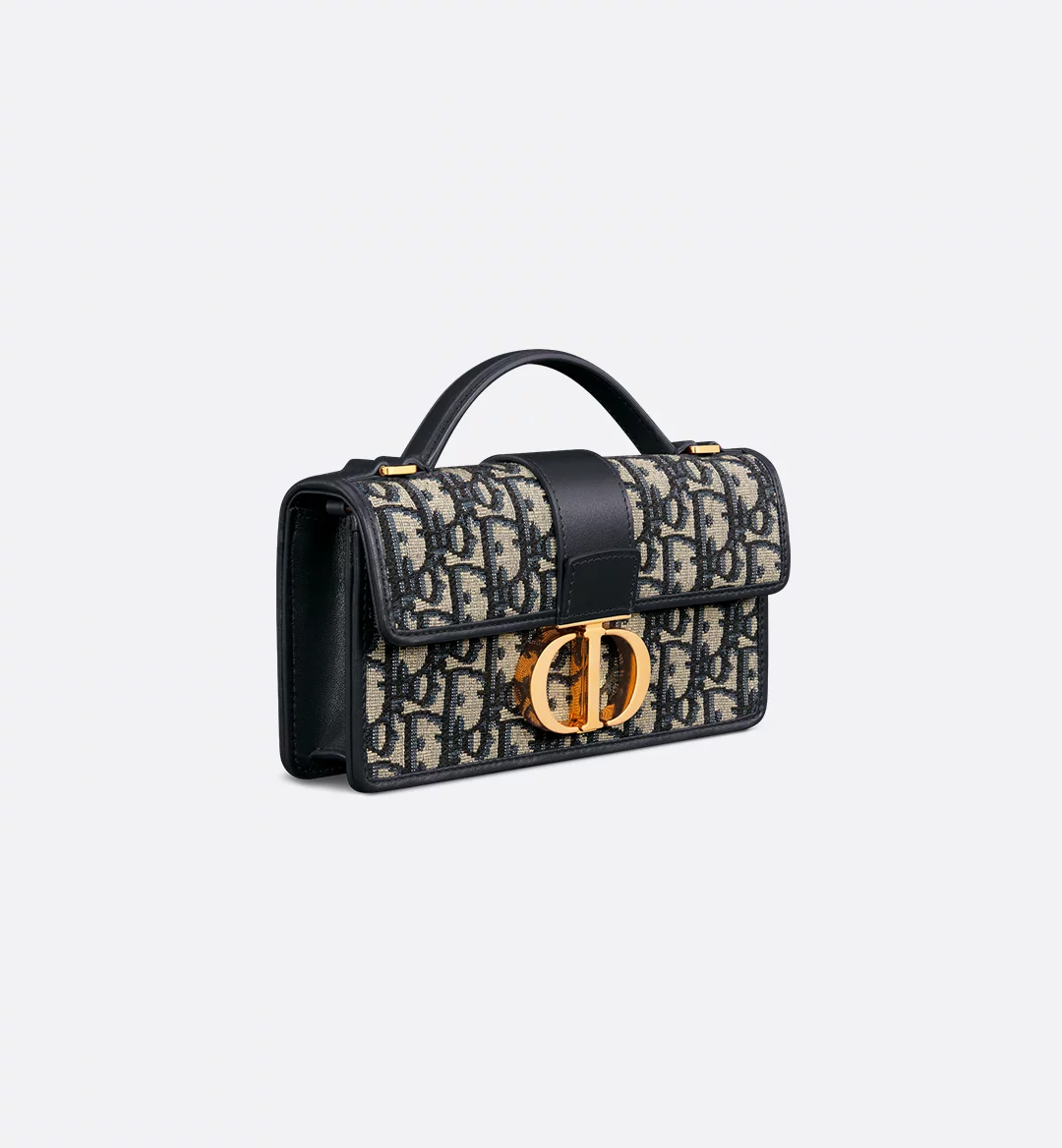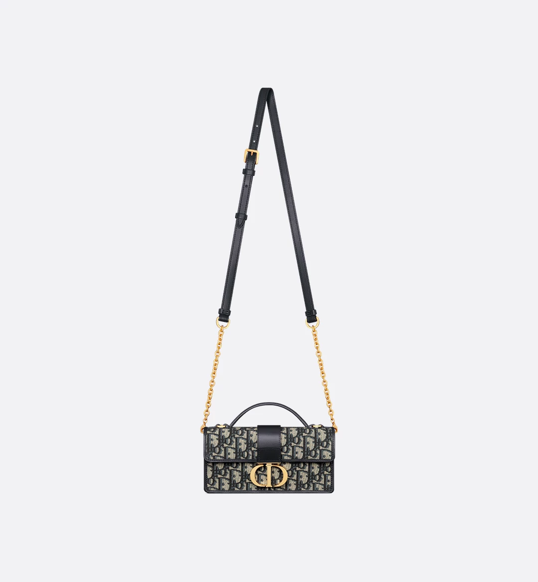Description: This Miss Montaigne mini-chain handbag is a new product of winter ready-to-wear series in 2024. which is practical and elegant. Made of blue Oblique printed fabric. the flip cover is decorated with retro gold decorative metal CD clasp. inspired by the seal of Christian Dior perfume bottle. which can store all kinds of daily necessities. With the top handle and adjustable chain shoulder strap combined with leather belt. it can be carried by hand. shoulder or slung sideways. making it an ideal handbag for daily styling.