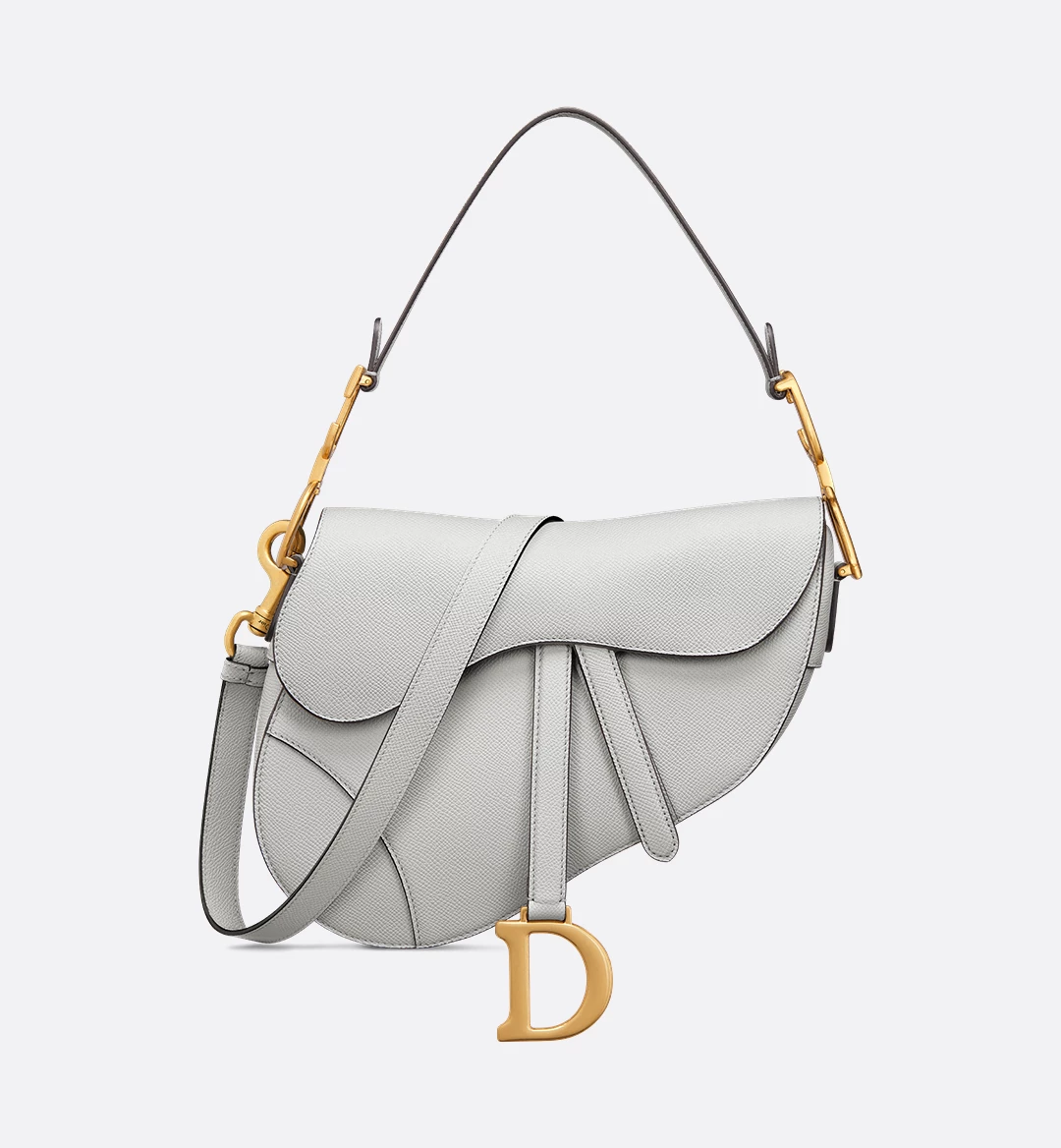 Description: This classic saddle bag highlights the ingenious design of Maria Grazia Chiuri. Made of cow leather with creamy white grain surface. the saddle flip is matched with lace decorated with stirrup D-shaped pendant and magnetic drawstring. which highlights the classic design. and the handles are decorated with metal CD logo with retro gold decoration on both sides. With adjustable and detachable thin shoulder straps. it can be carried by hand. shoulder or slung.