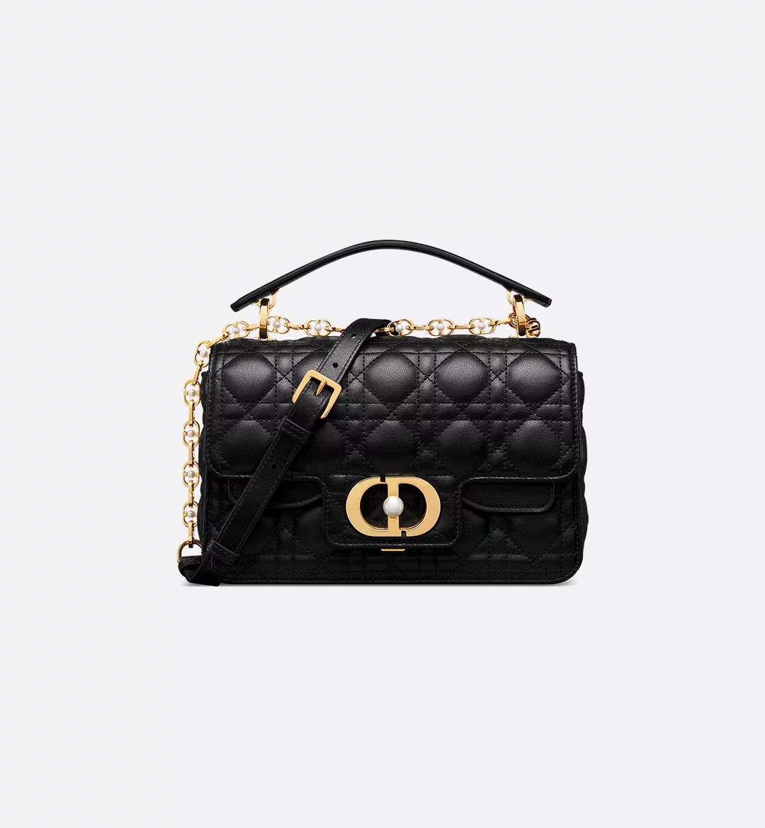 Description: This Dior Jolie Top Handle handbag has both elegant temperament and practical functions. Made of black cow leather. decorated with rattan check thread. double flip decorated with CD logo to enhance the style. decorated with painted aluminum beads. three compartments and zipper pockets can accommodate all kinds of daily necessities. which can be matched with daily or evening styles. Small style. with detachable handle and detachable chain shoulder strap. The shoulder strap consists of leather belt and CD logo link. decorated with resin beads. which can be comfortably carried. shouldered or slung.