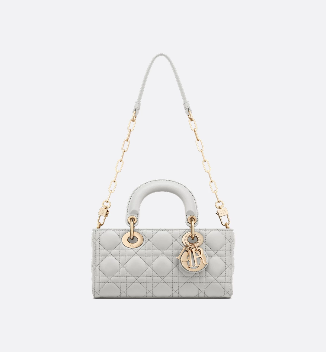 Small Lady D-Joy handbag Color: Cloud gray sheep leather rattan plaid