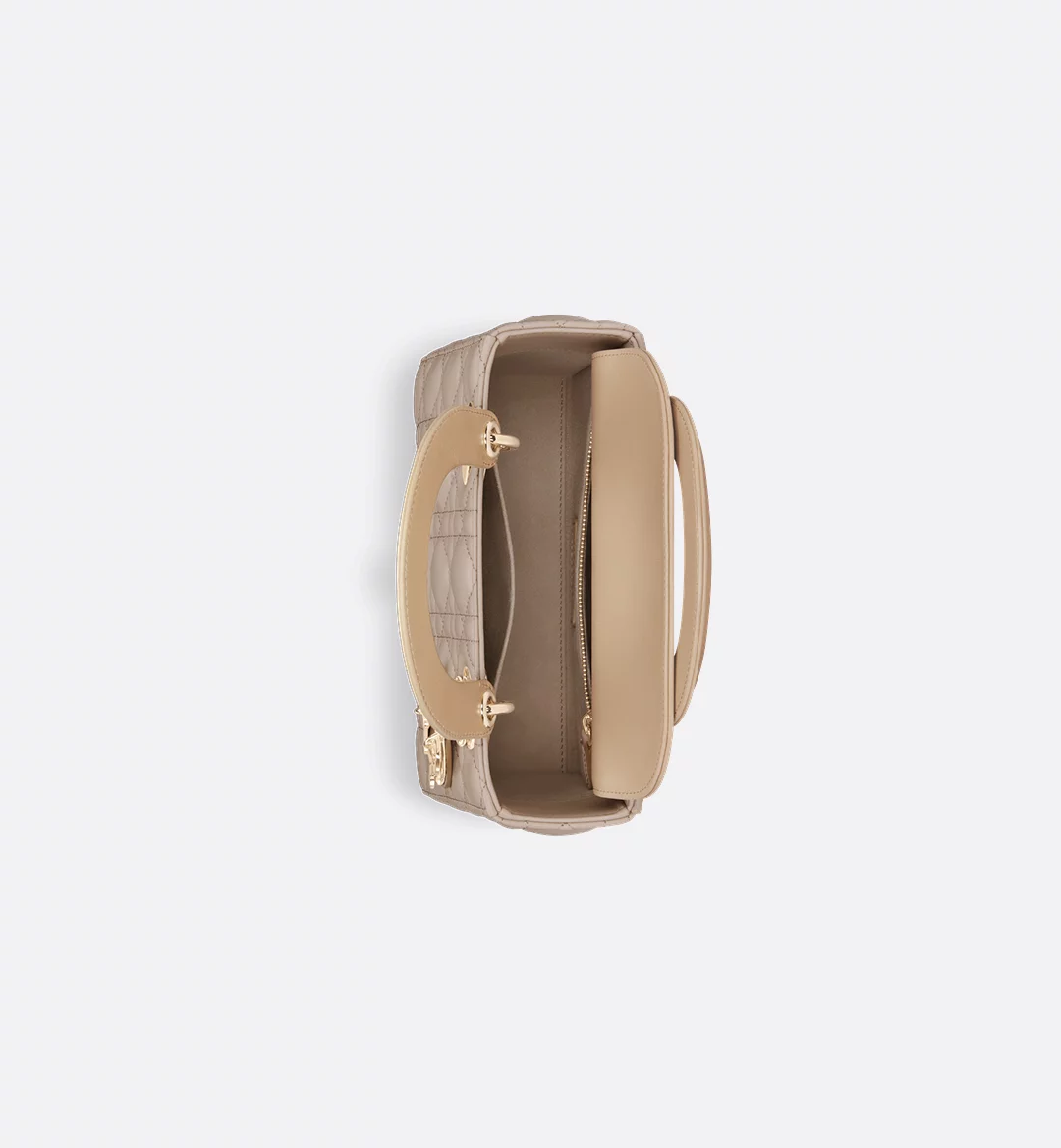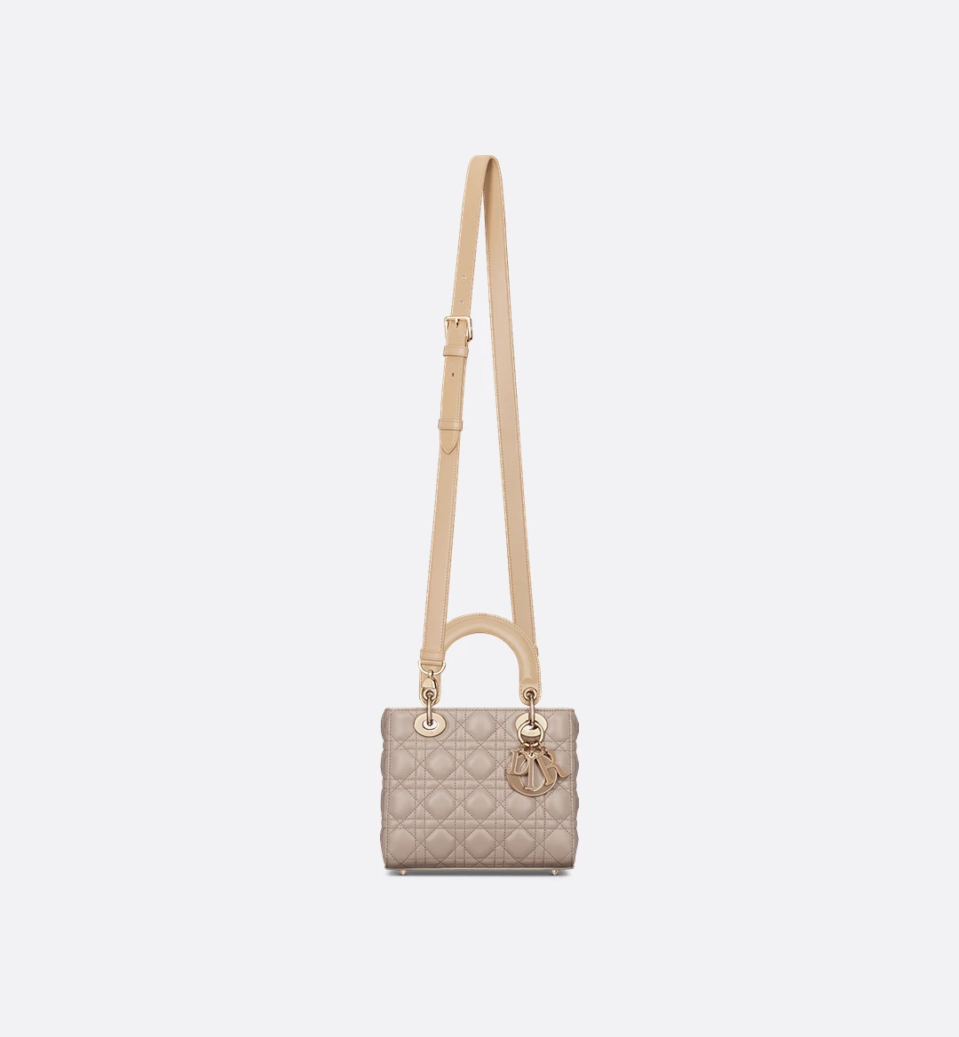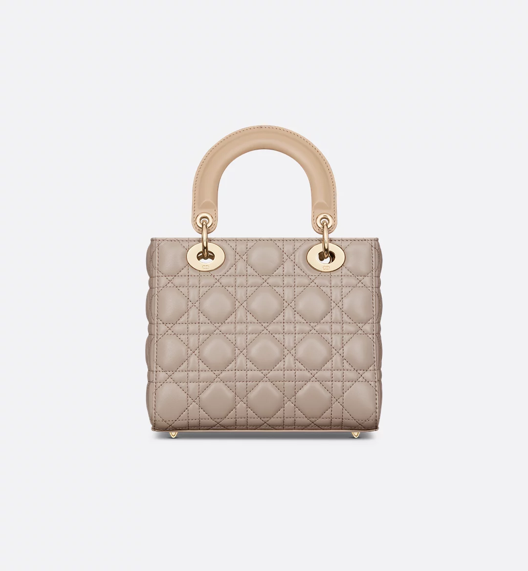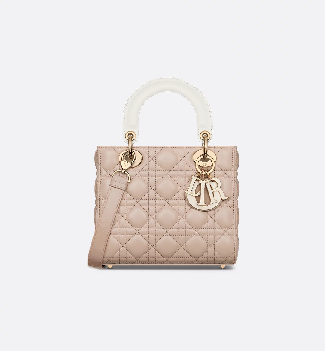 Description: This Lady Dior handbag embodies Dior's profound insight into elegance and beauty. Made of beige and biscuit-colored sheep leather. it uses rattan grain to make eye-catching quilting texture. and the fashionable and elegant design is enduring. The D.I.O.R pendant is decorated with enamel that matches the tone of the top handle. adding a touch of agility to the exquisite outline. Small style. with detachable leather shoulder straps. can be carried or slung.