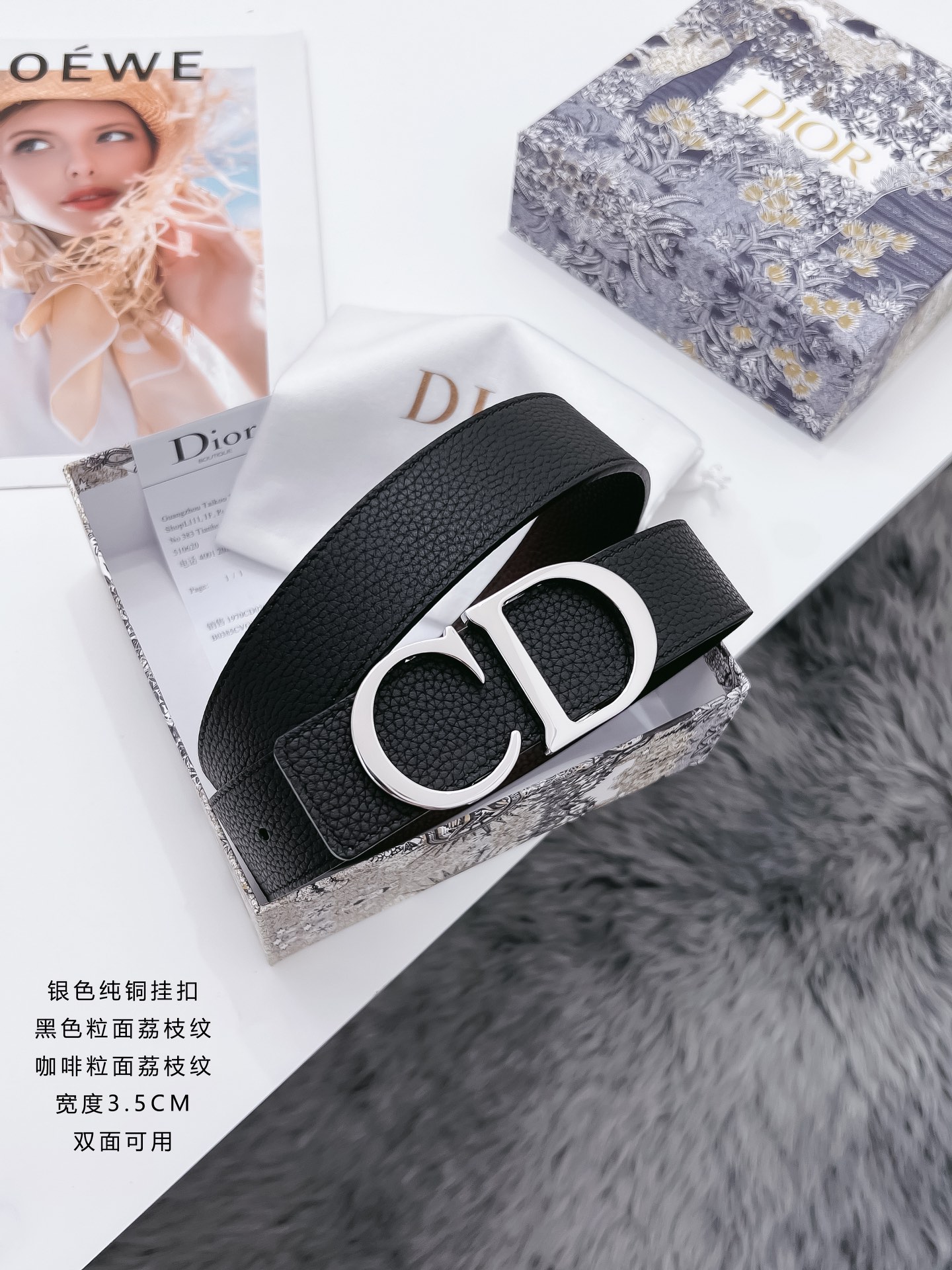 • Dior Mens Leather Belt Width 3.5cm 016