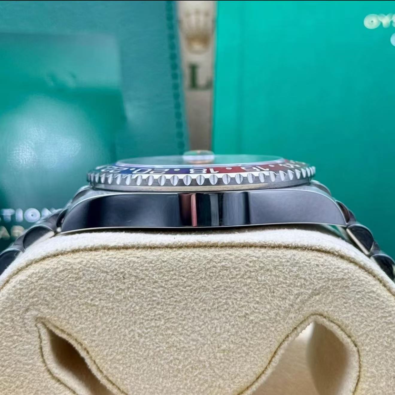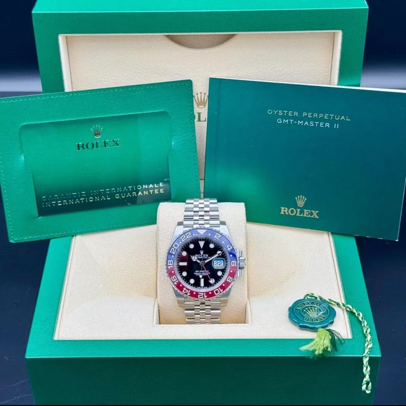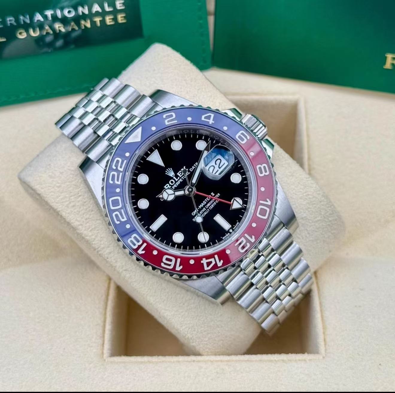 The Rolex GMT-Master II is a horological masterpiece that redefines timeless style and functional precision. Celebrated for its iconic two-tone ceramic bezel—blending fiery red and cool blue in a seamless. one-piece construction—this timepiece pays homage to the brand's aviation heritage while catering to modern globetrotters. Its 904L stainless steel case. polished to perfection. houses a robust movement certified as a Superlative Chronometer. ensuring accuracy to within -2/+2 seconds per day.