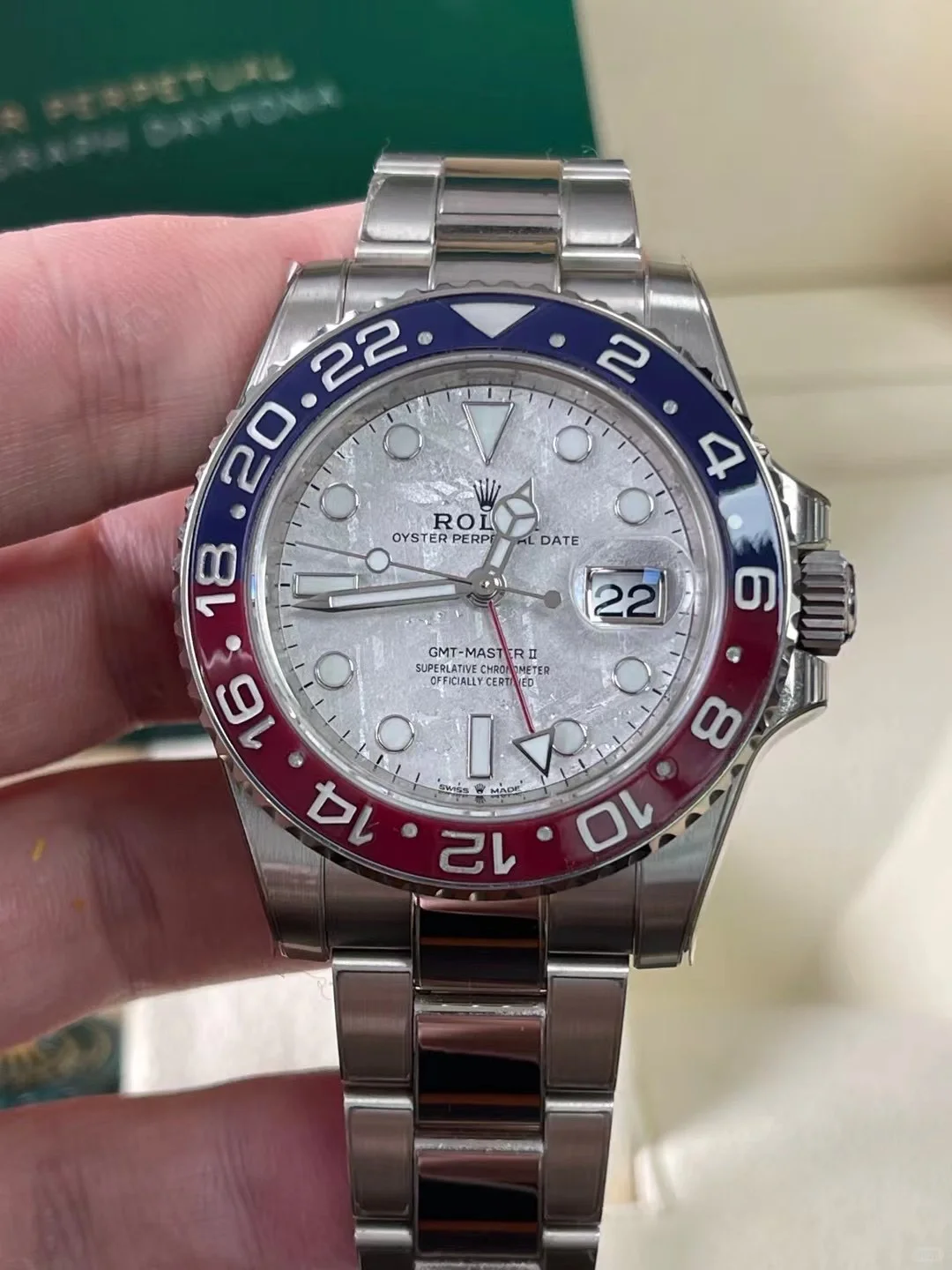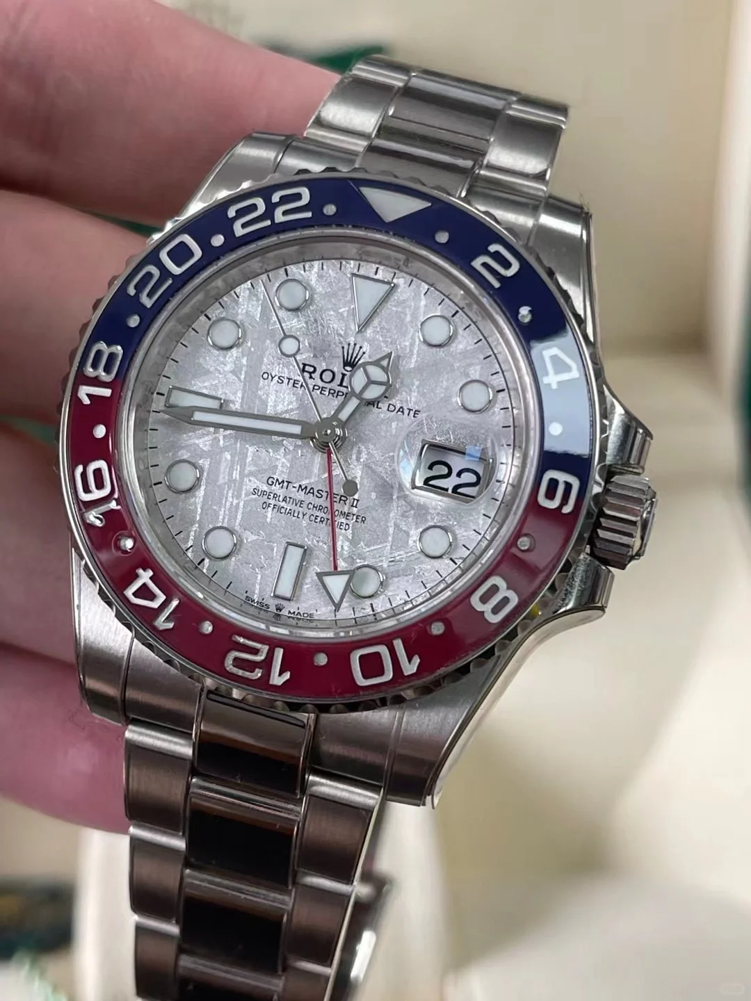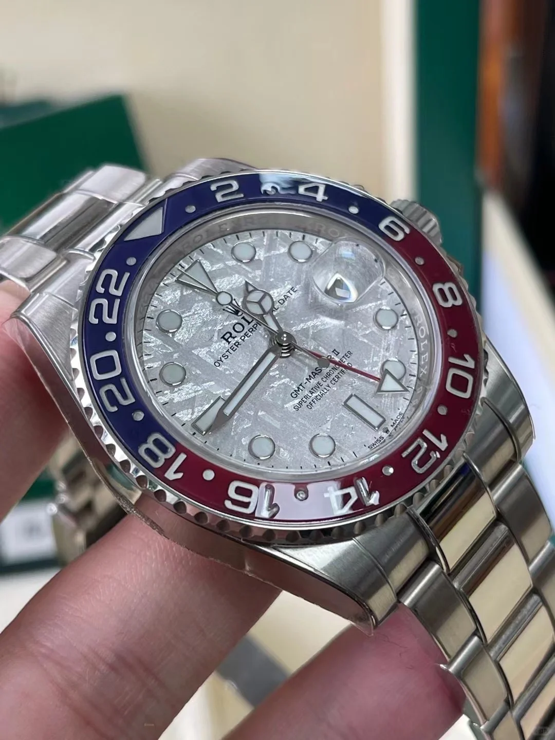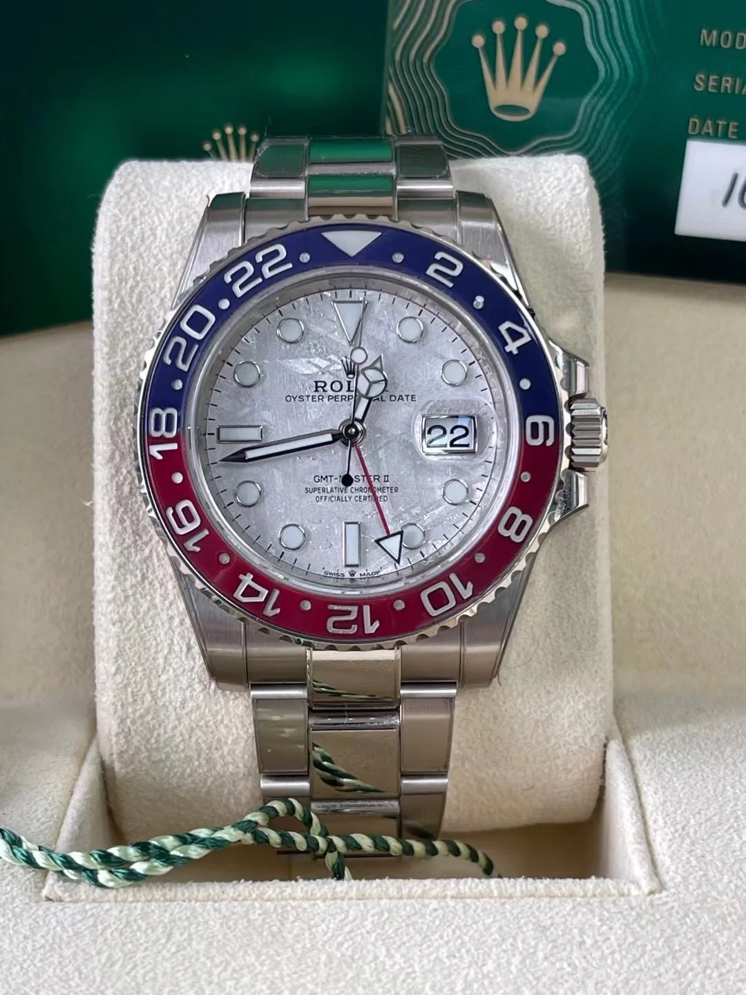 • Boasts a striking Oystersteel case paired with a iconic Pepsi bezel—featuring a two-tone ceramic insert in vivid red and blue. meticulously designed for bold visual contrast and long-lasting durability.