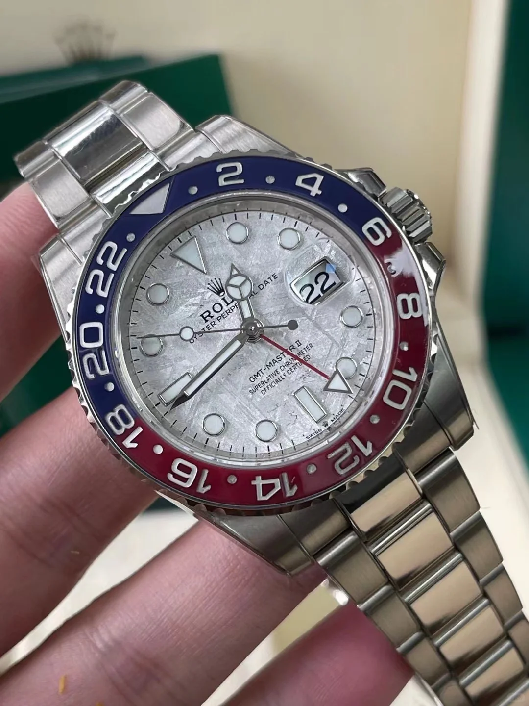 The Rolex GMT-Master II is a legendary timepiece that redefines luxury and practicality. Its iconic Pepsi bezel—featuring a seamless blend of red and blue ceramic—instantly identifies this masterpiece. while its robust 904L stainless steel build and precision-crafted movement ensure decades of reliability. Whether tracking multiple time zones on business trips or adding a touch of sophistication to evening attire. this watch embodies Rolex's unwavering commitment to excellence. making it a must-have for collectors and connoisseurs alike.