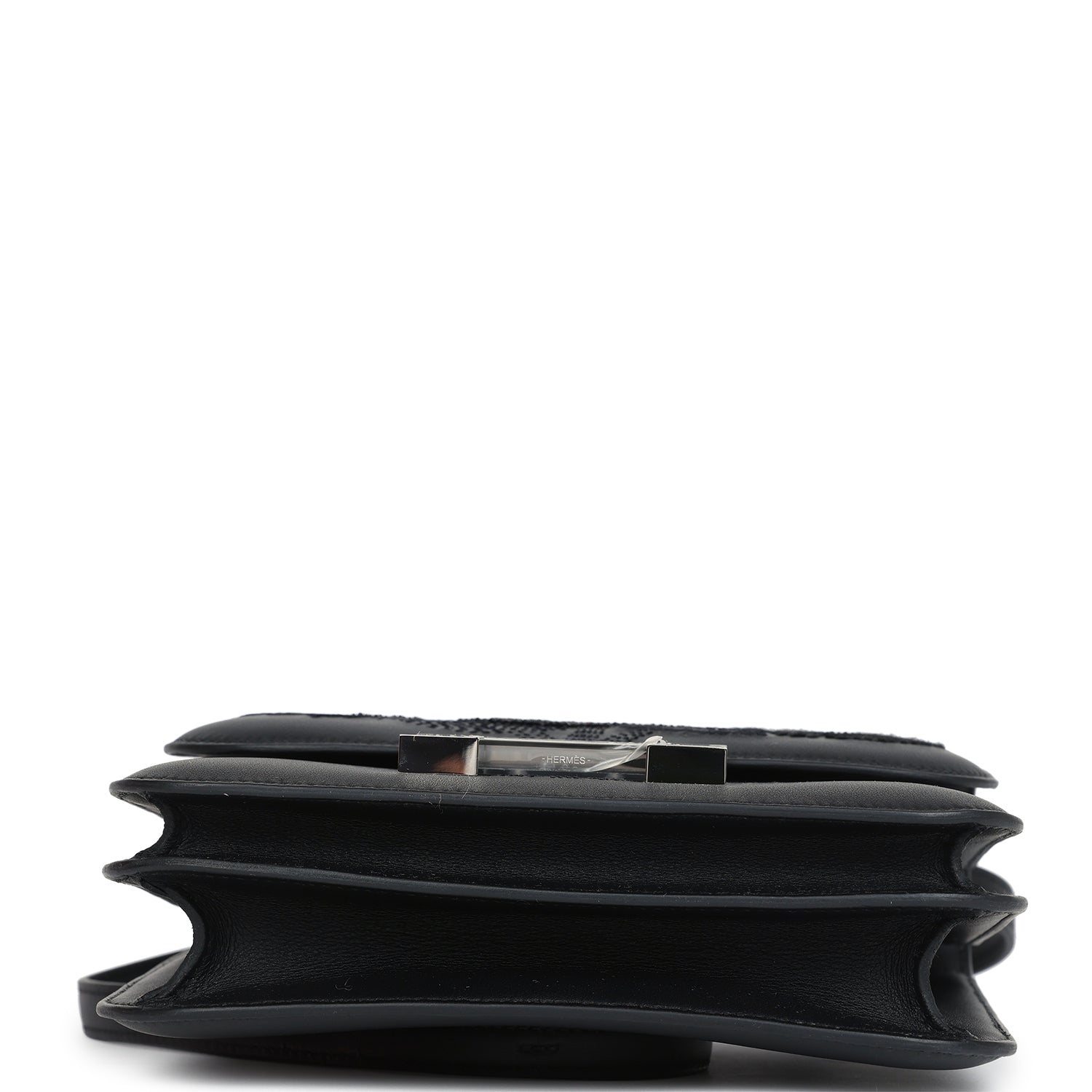 Hermes Constance 18 "Dancing Flowers" Black Embroidered Swift Palladium Hardware