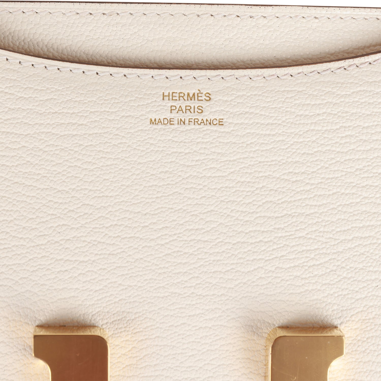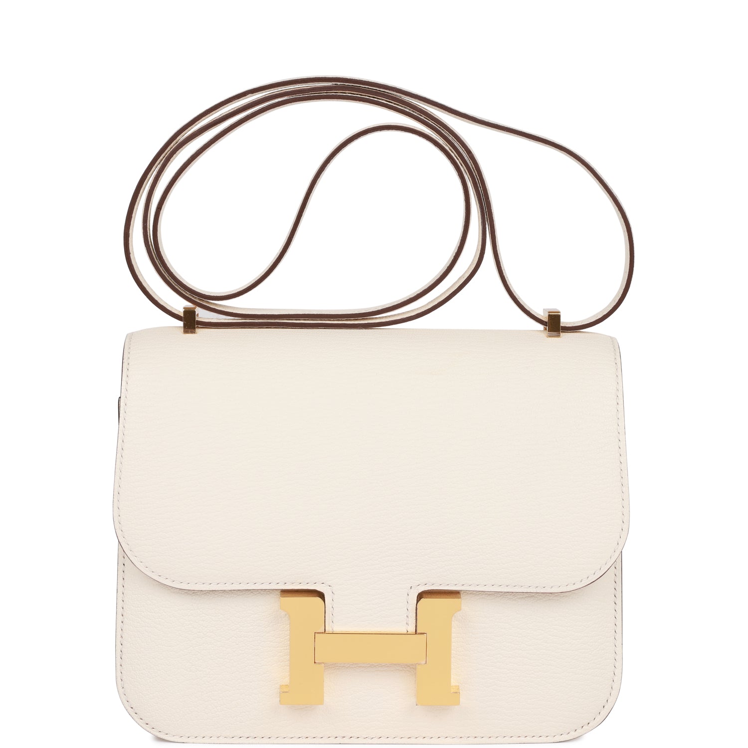 This Constance is in Nata chevre mysore leather with gold hardware and has tonal stitching. a metal "H" snap lock closure and adjustable shoulder strap.
