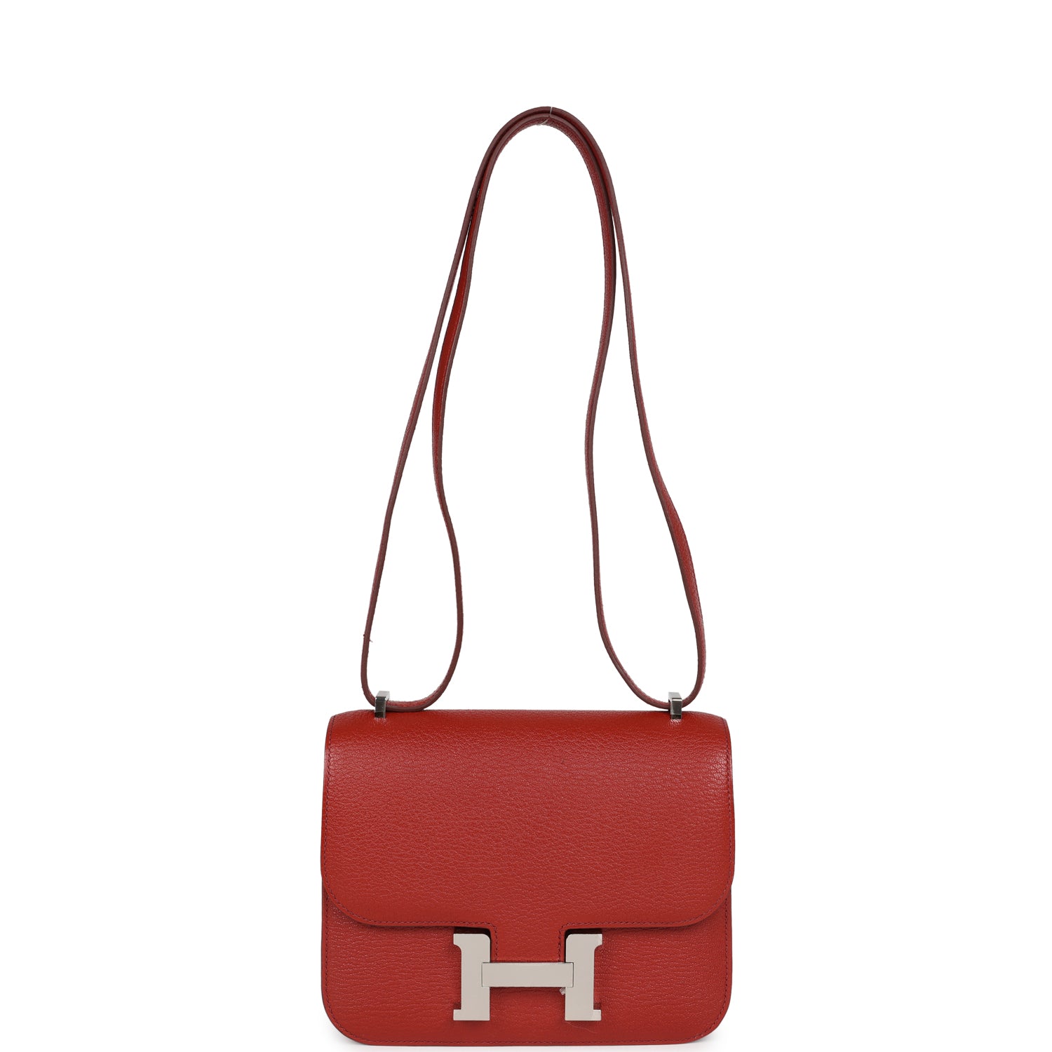This Constance 1-18 Verso is in Brique and Rose Azalee chevre mysore leather with palladium hardware and has tonal stitching. a palladium "H" snap lock closure and adjustable shoulder strap.