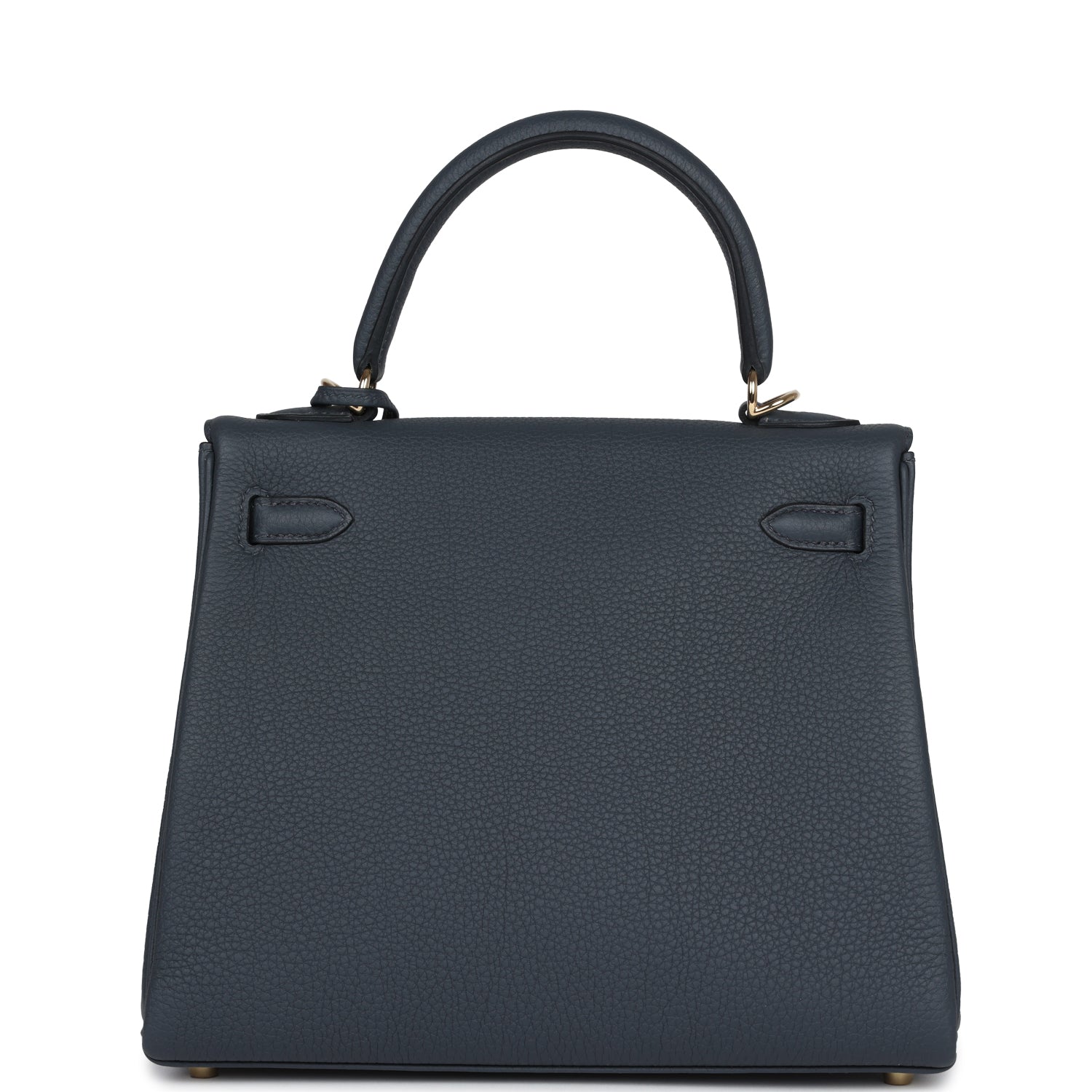 This Kelly. in the Retourne style. is in Gris Misty togo leather with permabrass hardware and has tonal stitching. two straps with front toggle closure. clochette with lock and two keys. single rolled handle and removable shoulder strap.