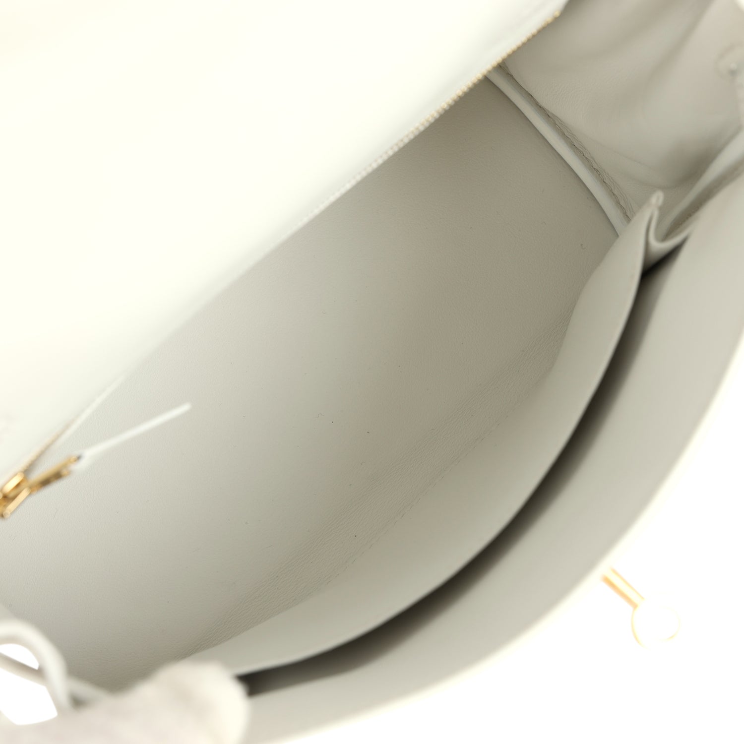 The interior is lined with New White swift leather and features one zip pocket with an Hermes engraved pull and one open pocket on opposite side.